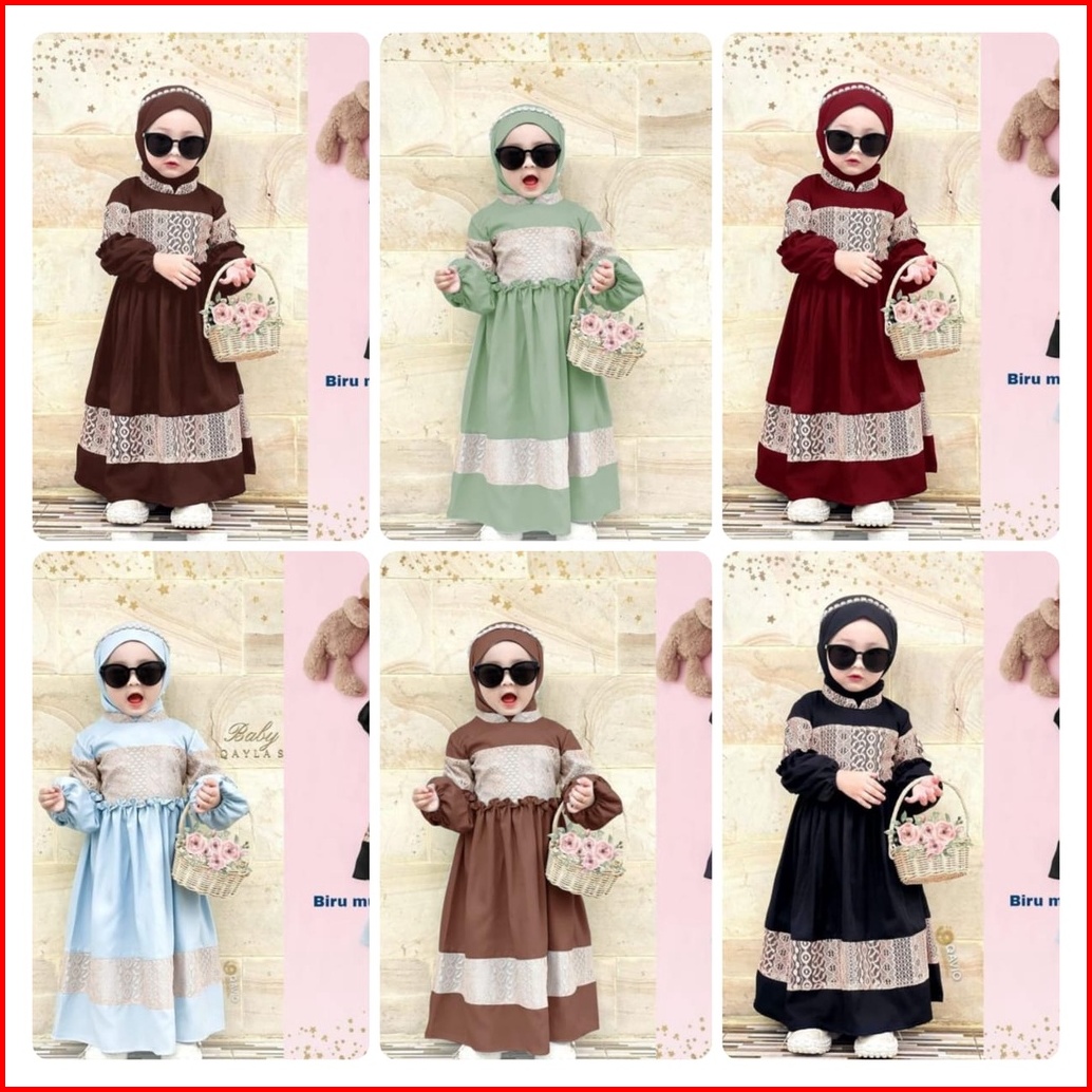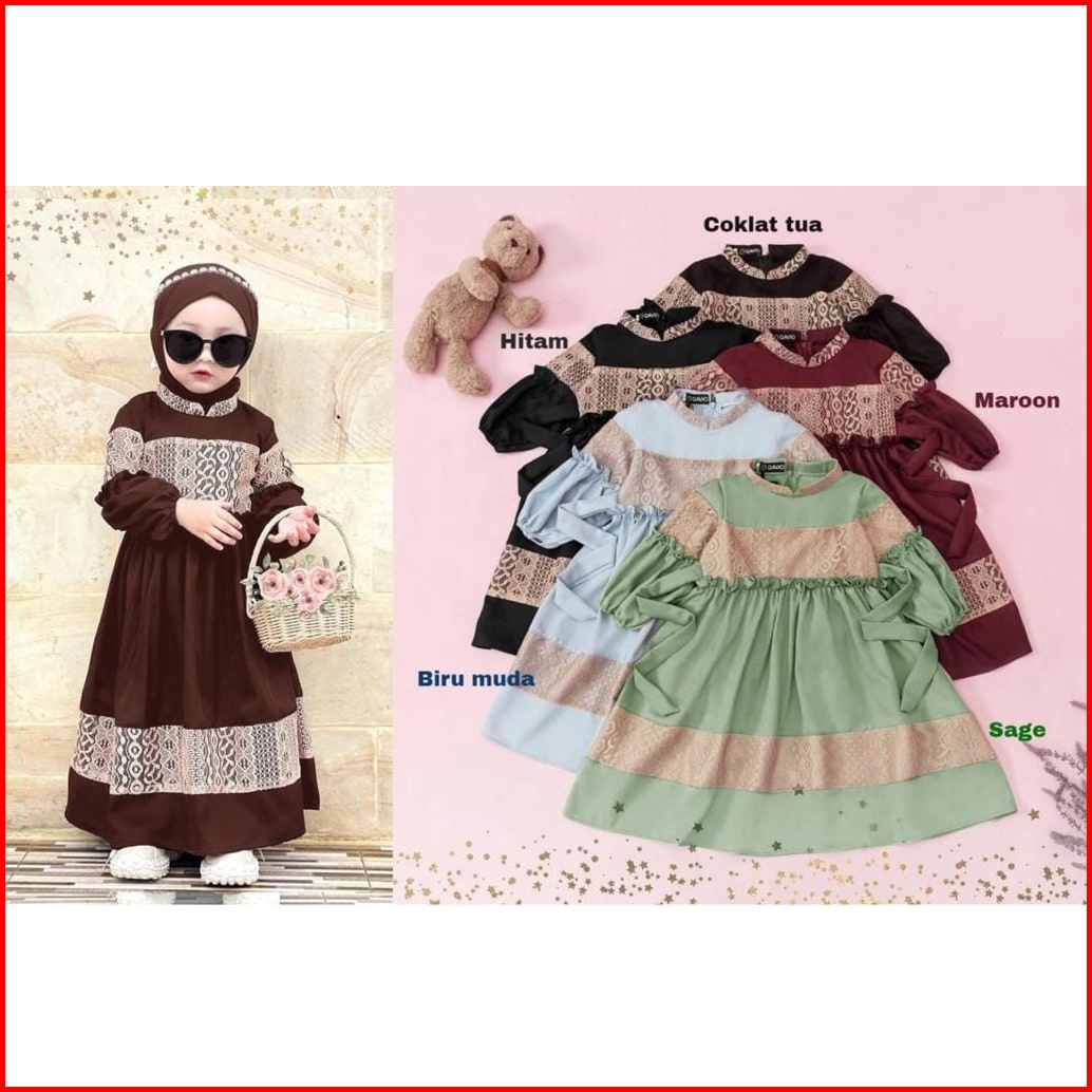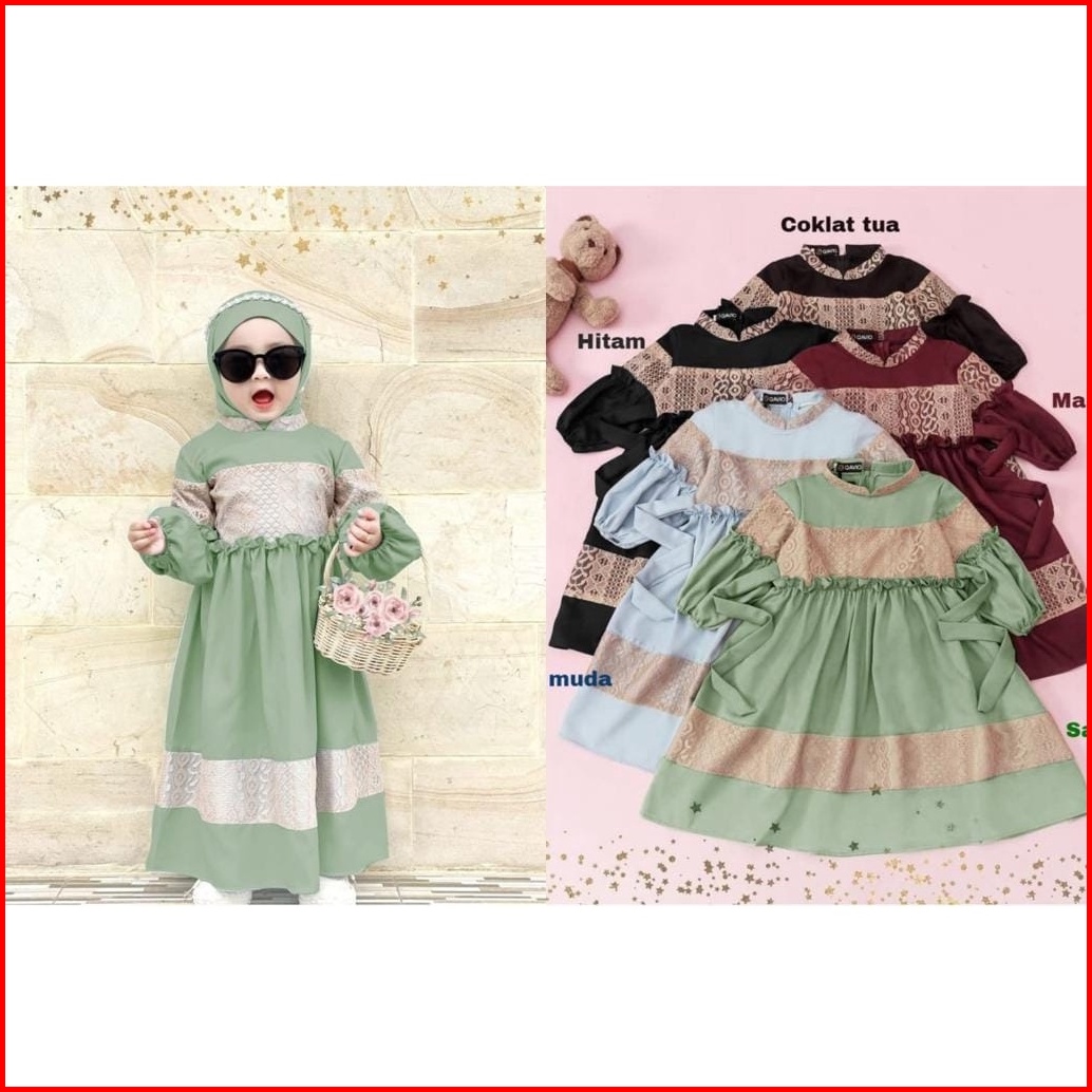 3 Ukuran S M L Syari Kid Suri Fashion Pakaian Muslim Anak Perempuan Bahan Moscrepe Aplikasi Renda Mr