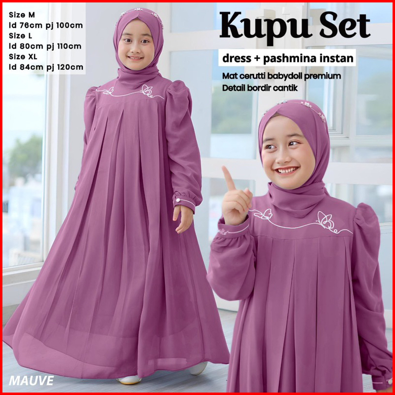 Altair Kids Kupu Dress Set Gamis Anak Perempuan Premium Gamis Muslim Anak Dress Anak Perempuan 5-12 Tahun Gamis Zaina Ku