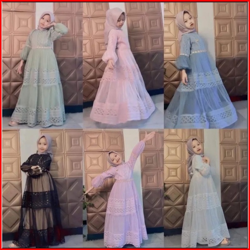 Gamis Pesta Anak Perempuan Bahan Brukat Tile Kekinian Ukuran S M L Xl Umur 3-17 Tahun Terlaris Sekarang