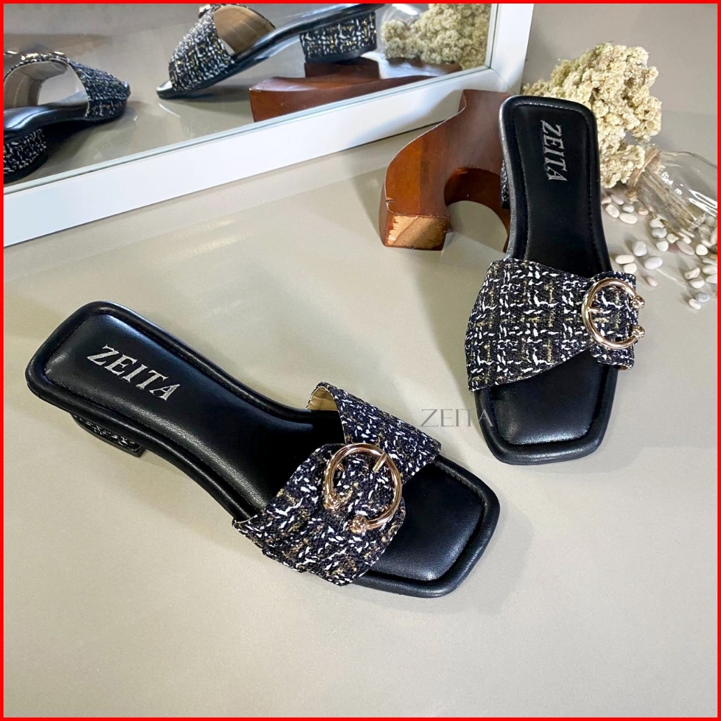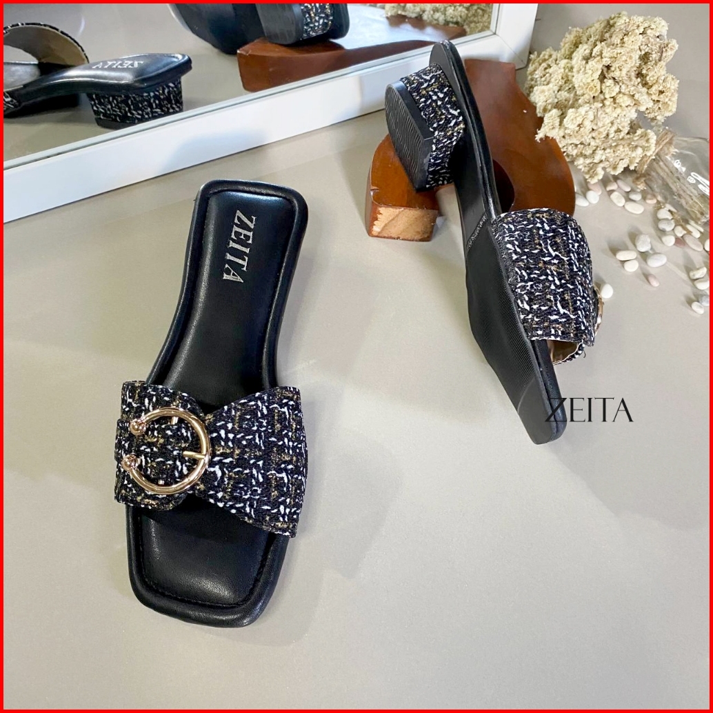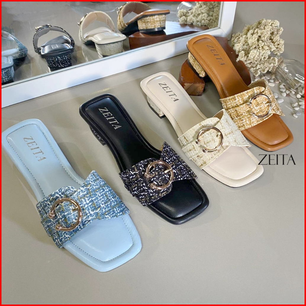 Zeita Sandal Heels Wanita Kekinian Hak 3cm Kain Motif Simpel Heels Kondangan