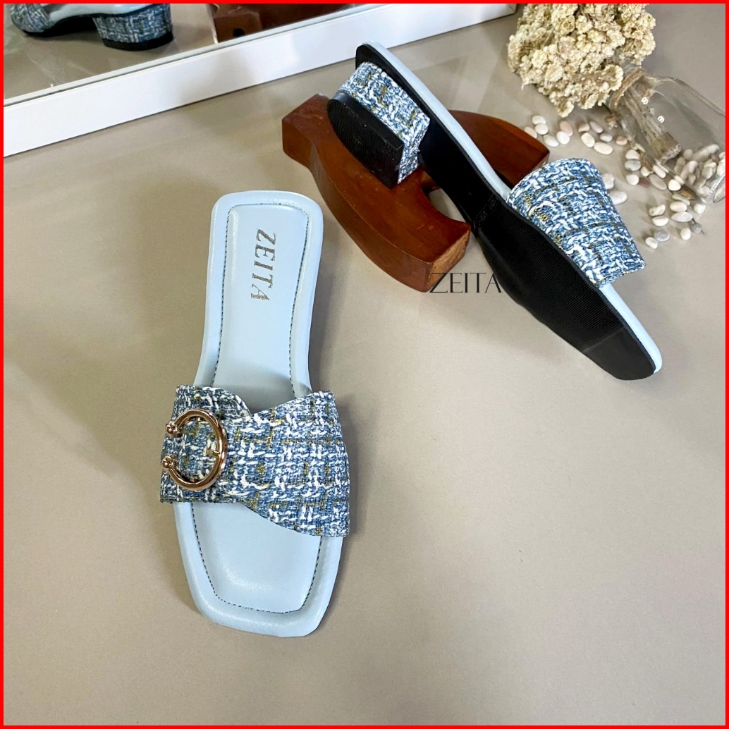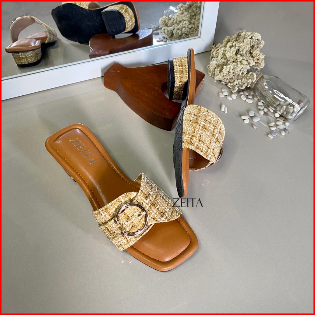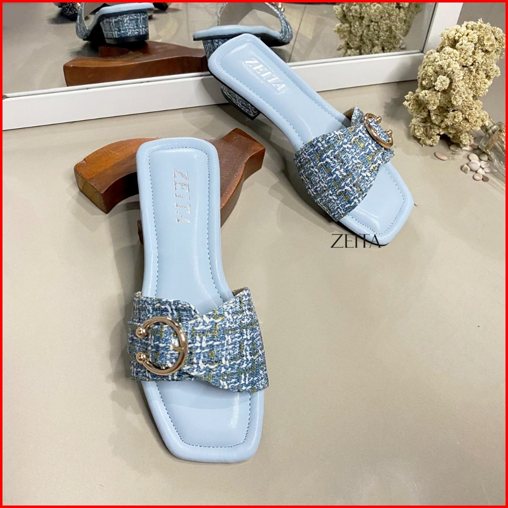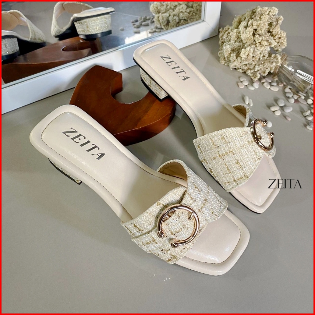 Zeita Sandal Heels Wanita Kekinian Hak 3cm Kain Motif Simpel Heels Kondangan