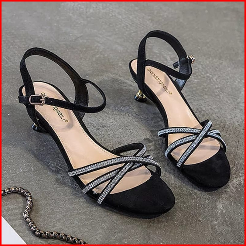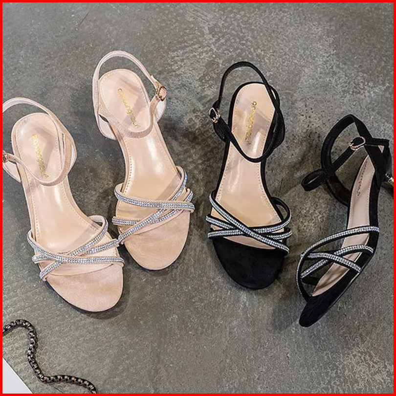 Gvn Shoes - Sandal Heels Hak Mule 3 Cm Pesta Kombinasi Mote Silang Ge 021