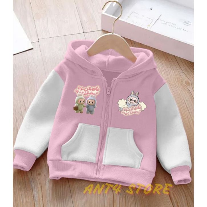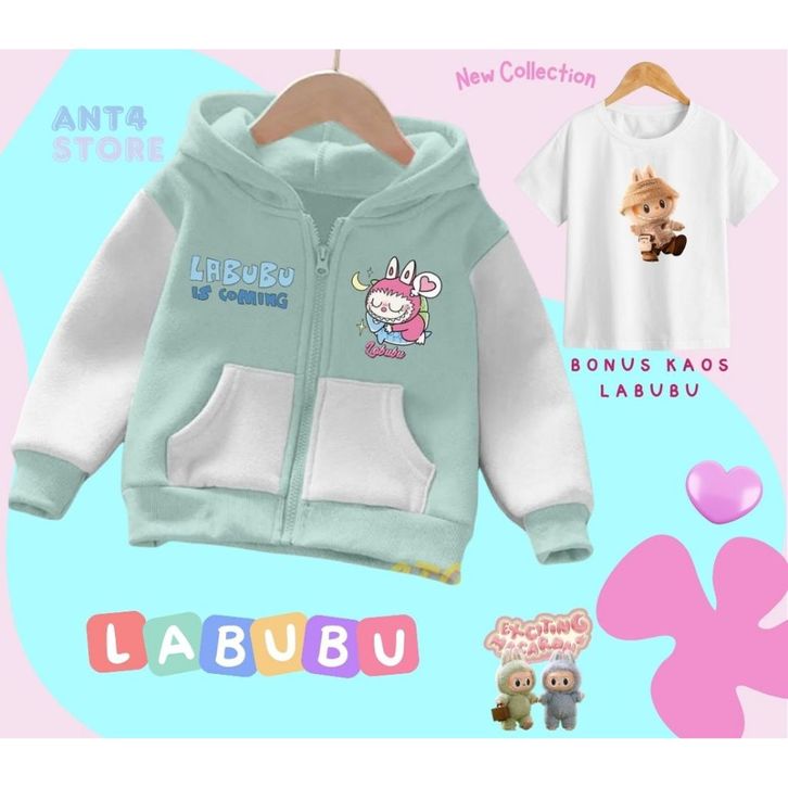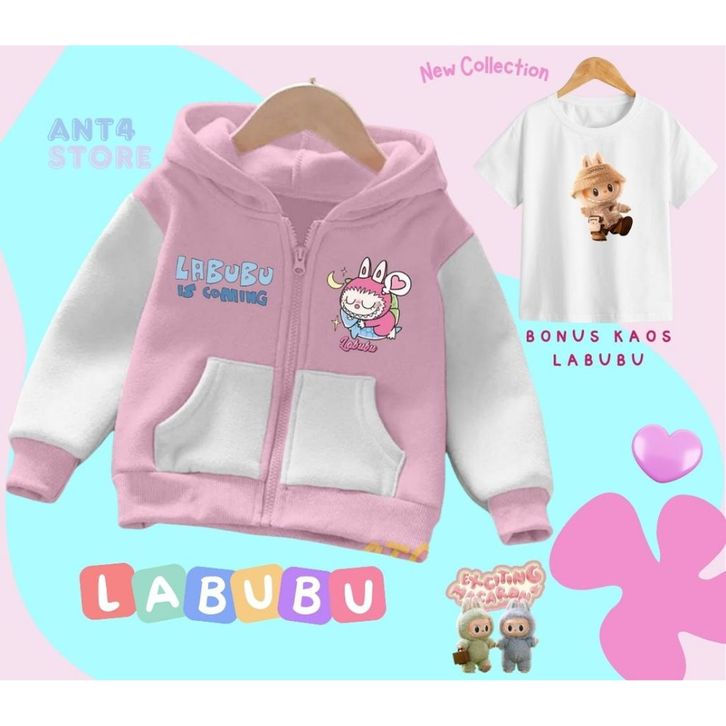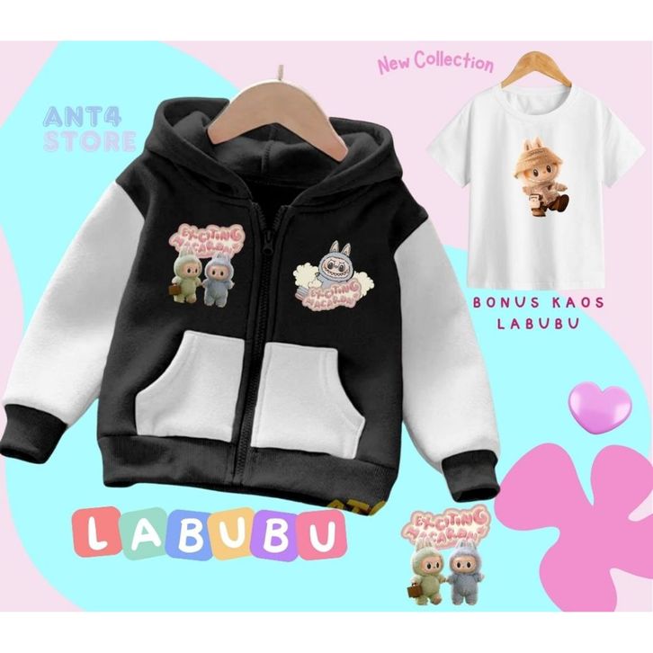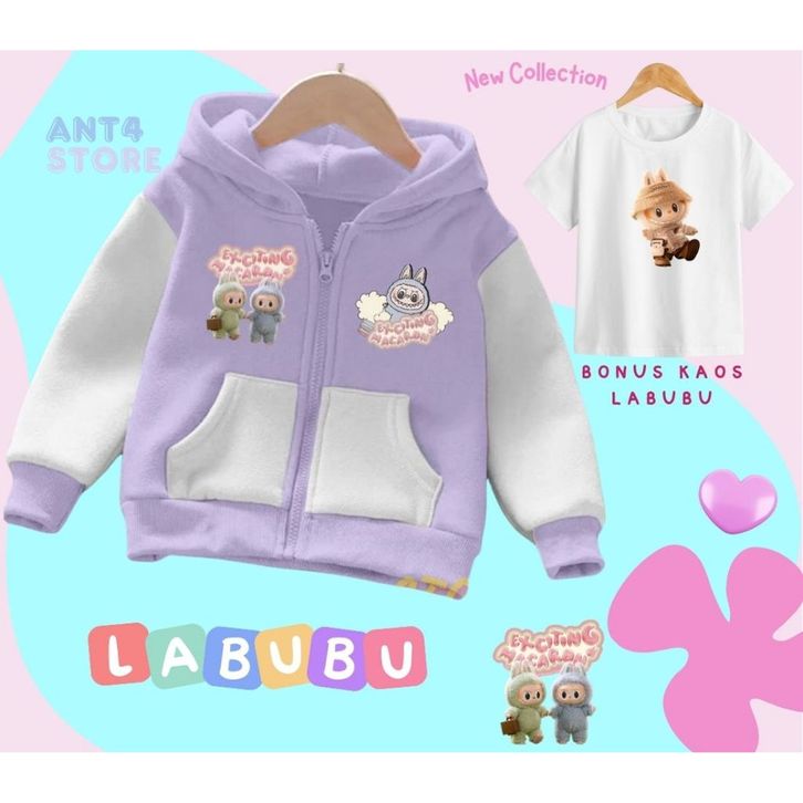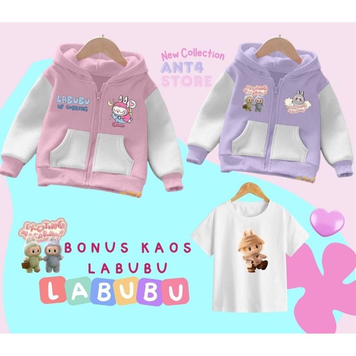 Jaket Resleting Labubu Anak Perempuan Jaket Zipper Anak Cewk Cowok Free Kaos Labubu Jaket Zipper Hoodie Anak Unisex