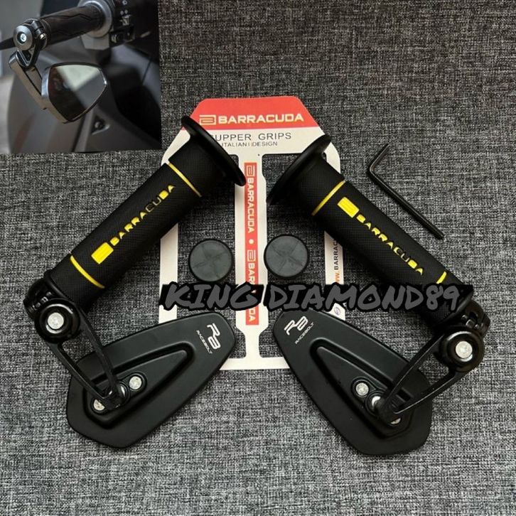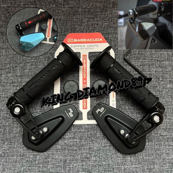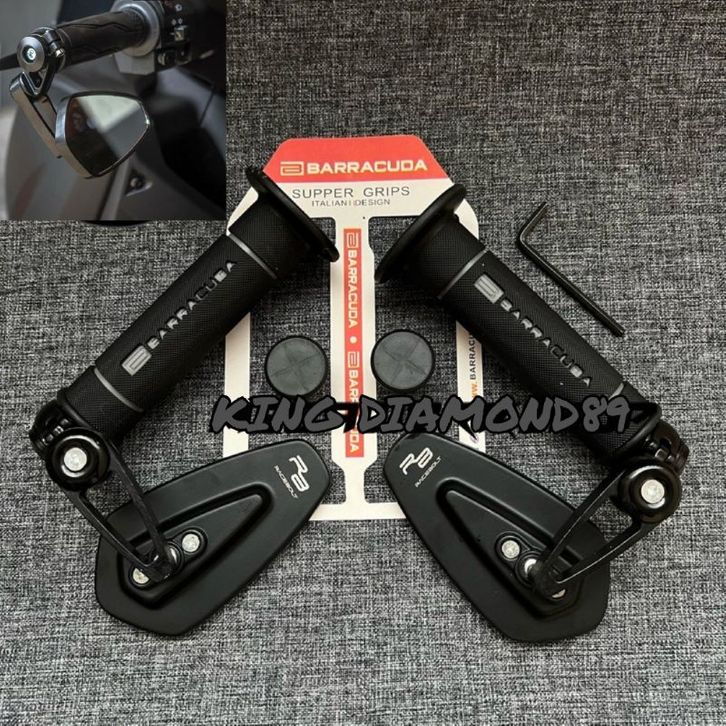 PAKET HEMAT 2in1 Handgrip Sarung Gas Barracuda Model RCB Racing Boy HG.55 + Spion Jalu Oval Bar End UNIVERSAL