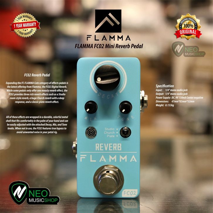 Efek Gitar Flamma FC02 Mini Guitar Reverb Pedal Studio Church Plate Original