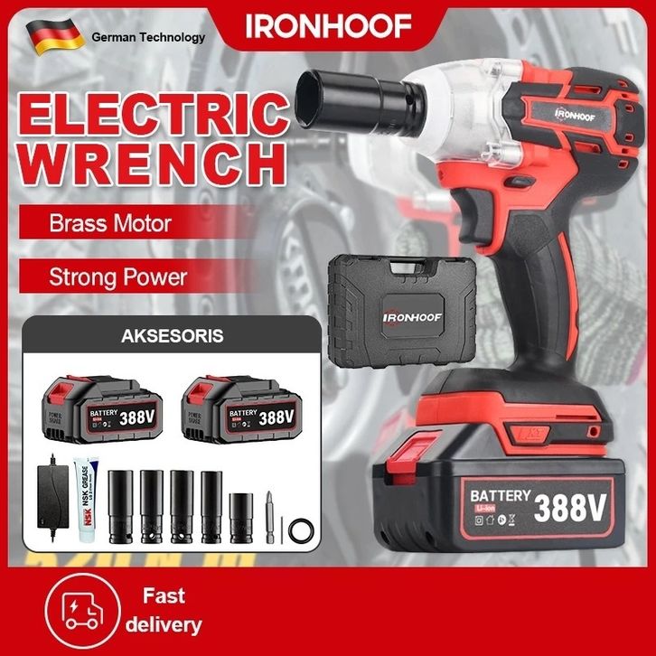 IRONHOOF Impact Wrench 388V Impact Baterai 288V Brushless 420N.M Electric Impact Wrench Spanner Sets