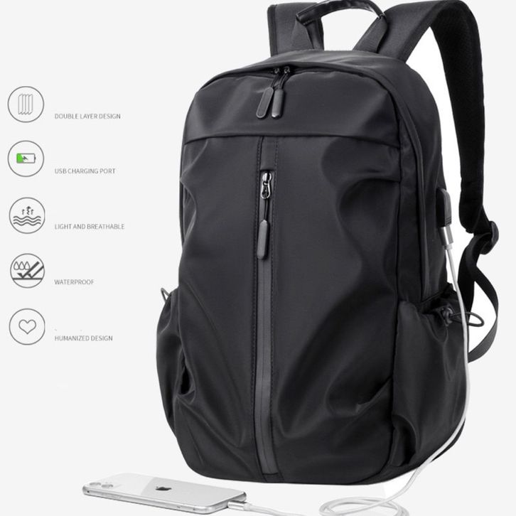 Tas Ransel Nilon Polos / Tas Pria Kerja Kuliah Sekolah Travel Hiking Backpack / Tas Ransel Laptop