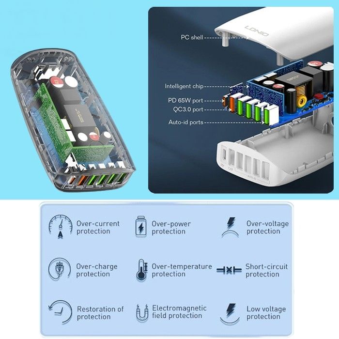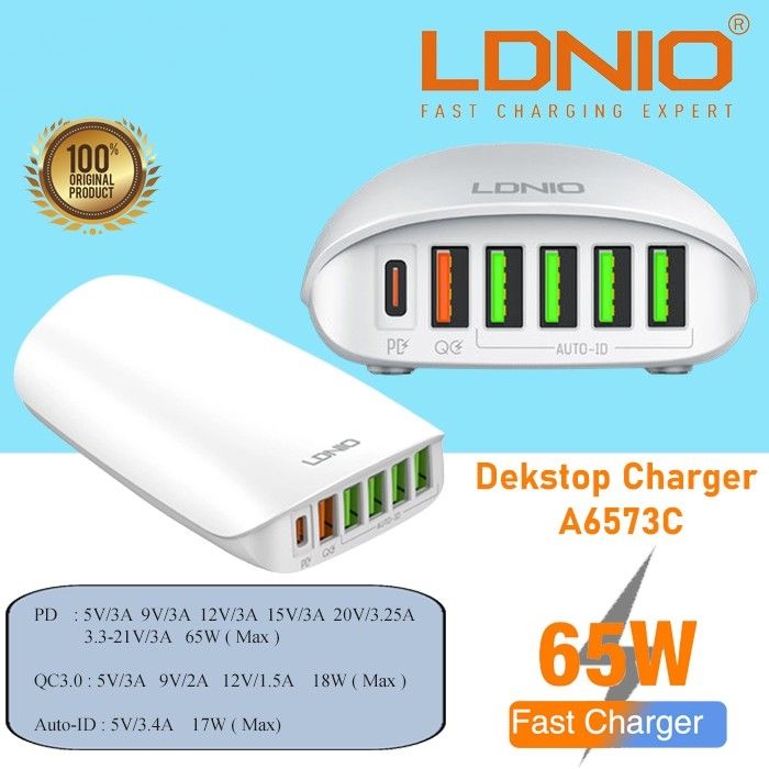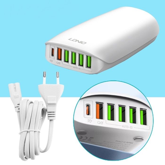 Desktop Charger LDNIO A6573C 65W PD/QC Super Fast Charging 6 USB Port