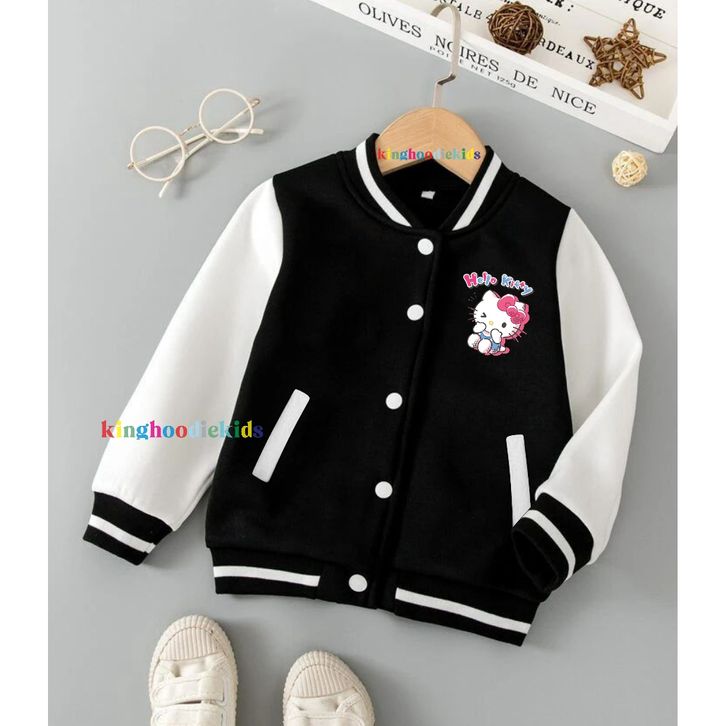 Jaket Baseball Anak Perempuan gambar Hello Kity Umur 2 3 4 5 6 7 8 9 10 11 12 Tahun Jaket Varsity Anak Cewe Cowo/Hoodie