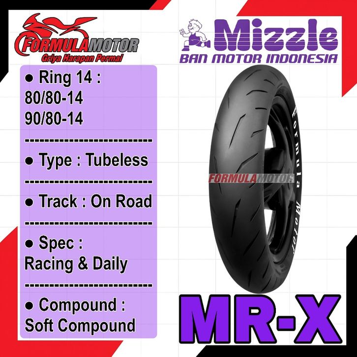 Ban Luar Motor Matic Beat, Mio, Vario Racing Soft Compound Mizzle MRX MR-X 80/80-14 90/80-14 Tubeless Produksi Terbaru