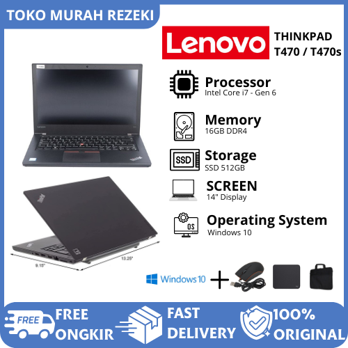 Laptop Lenovo Thinkpad T470 T470S Windows 10 Ram 16 SSD 1TB Intel Core i5 i7 Gen 6 7 Layar 14" Inch Cocok Untuk Pelajar