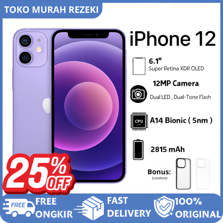Apple Iphone 12 Kapasitas 64GB 128GB Second Like New IMEI Terdaftar Bea Cukai Mulus Sinyal Permanen Fullset LCD Ori