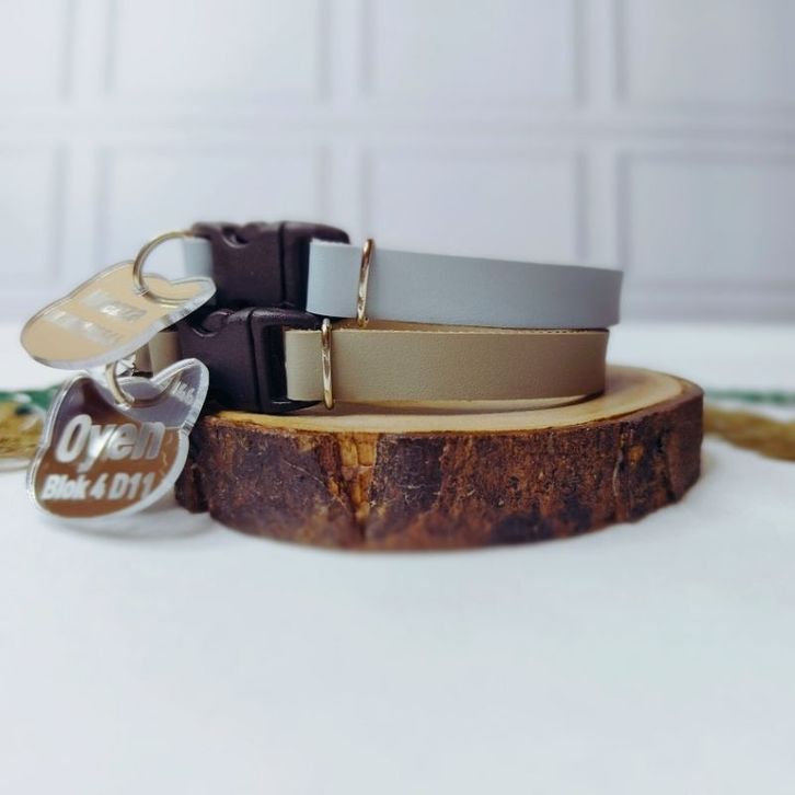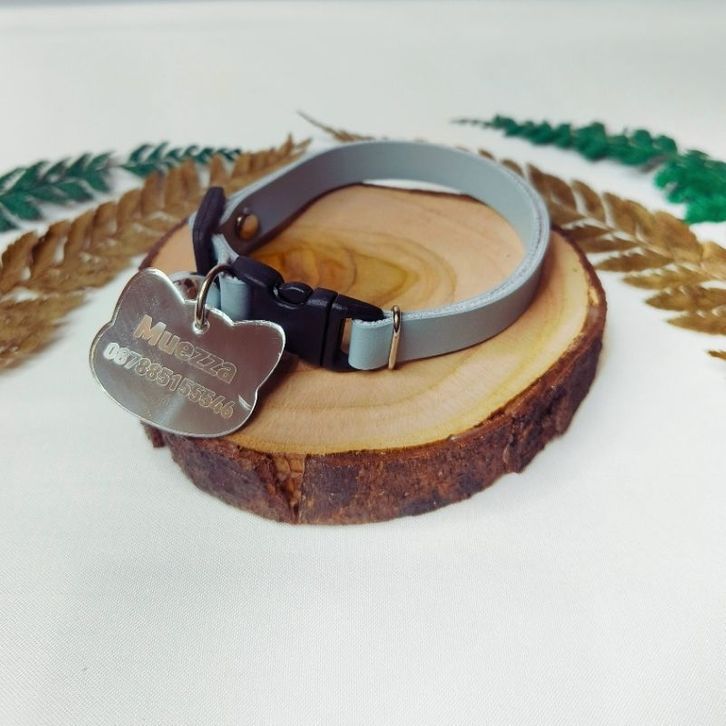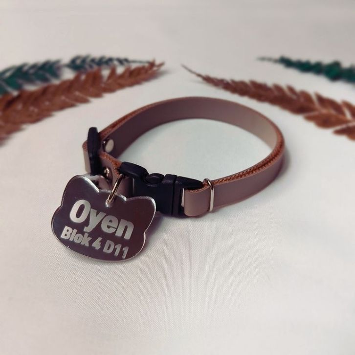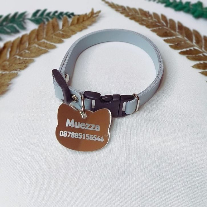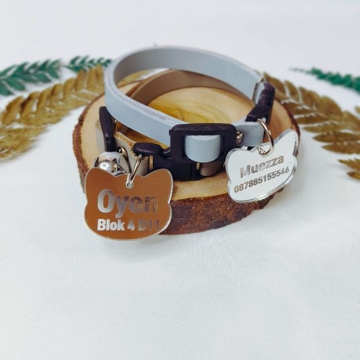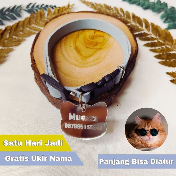 KALUNG KUCING DARI KULIT SINTETIS GRATIS UKIR NAMA DAN LONCENG NYARING BAHAN AKRILIK SILVER PREMIUM BISA DI ATUR SESUAI
