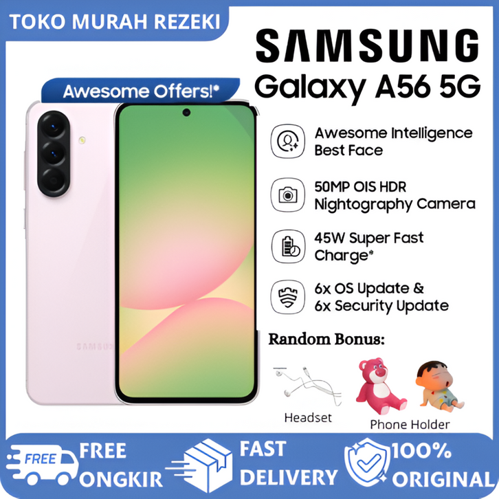 HP Samsung A56 5G (12/512GB) 50MP Nightopgraphy Camera 5000mAh with 45W Super Fast Charge Garansi 1 Tahun Free Ongkir