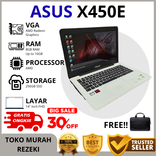 Laptop Asus X450E AMD E1 - 2500 Layar 14" Inch Ram 8GB 4GB SSD 256GB 500GB 1TB Windows 10 Second Original Untuk Pelajar