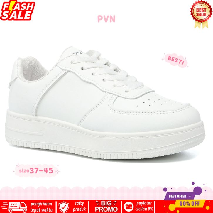 PVN Hana Sepatu Putih Wanita Kets Sneakers Sport Shoes White Black 222