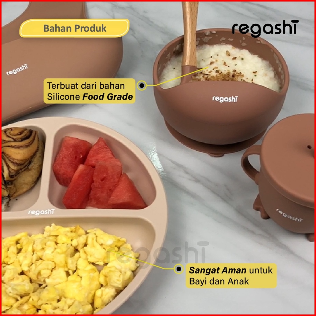Regashi Tempat Makan Bayi Silikon Alat Makan Bayi Silikon Baby Set Completed Tableware