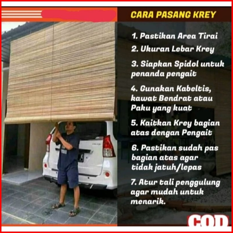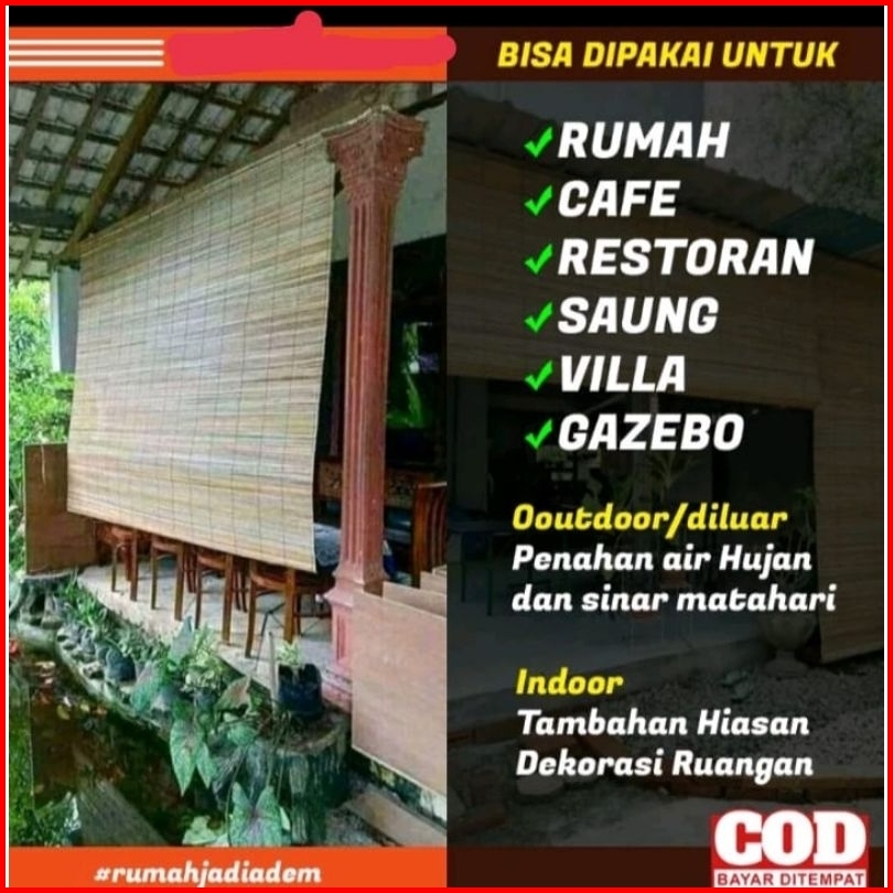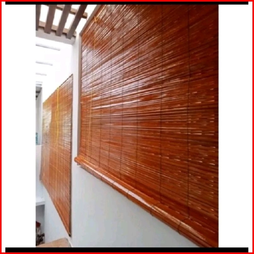 Tirai Bambu Plitur Vernis 2x2 Meter Lengkap Tali Penggulung Dan Ring Kerekan Semua Ukuran Lebar Kali Tinggi