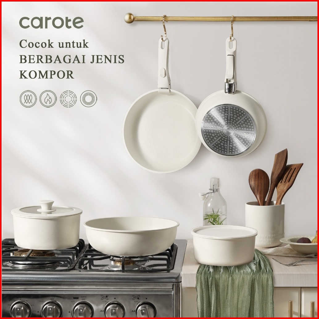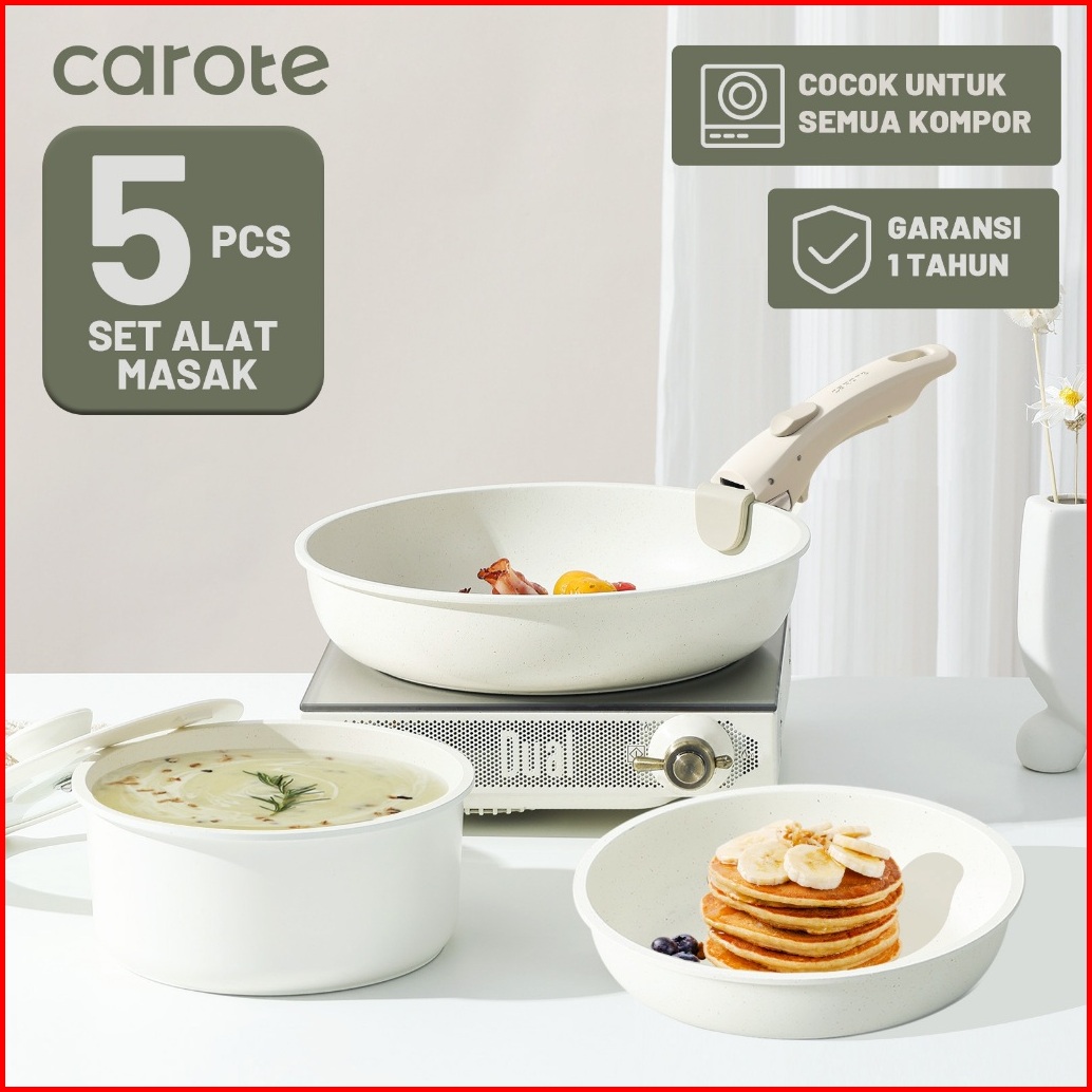 Carote Peralatan Masak Set 5 Pcs Dengan Gagang Lepas Pasang Memudahkan Penyimpanan Lapisan Granit Cocok Untuk Semua Jeni
