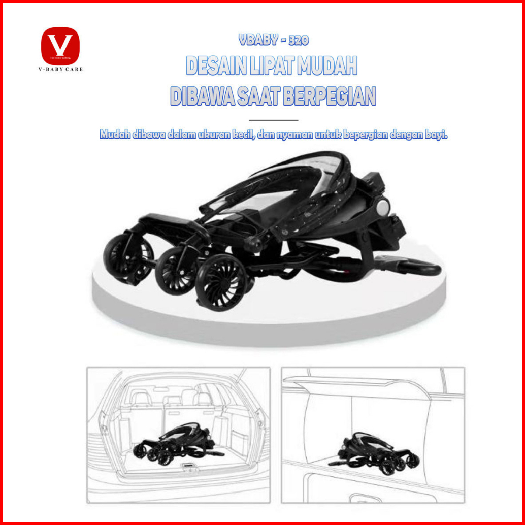 Vbaby Care Kereta Dorong Datar Berbaring Dapat Dilipat Dua Arah Stroller Vbaby-320