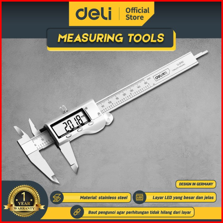 Deli Vernier Caliper Jangka Sorong Digital 6 Inch 150 Mm Stainless Steel Dl91150 Alat Perkakas