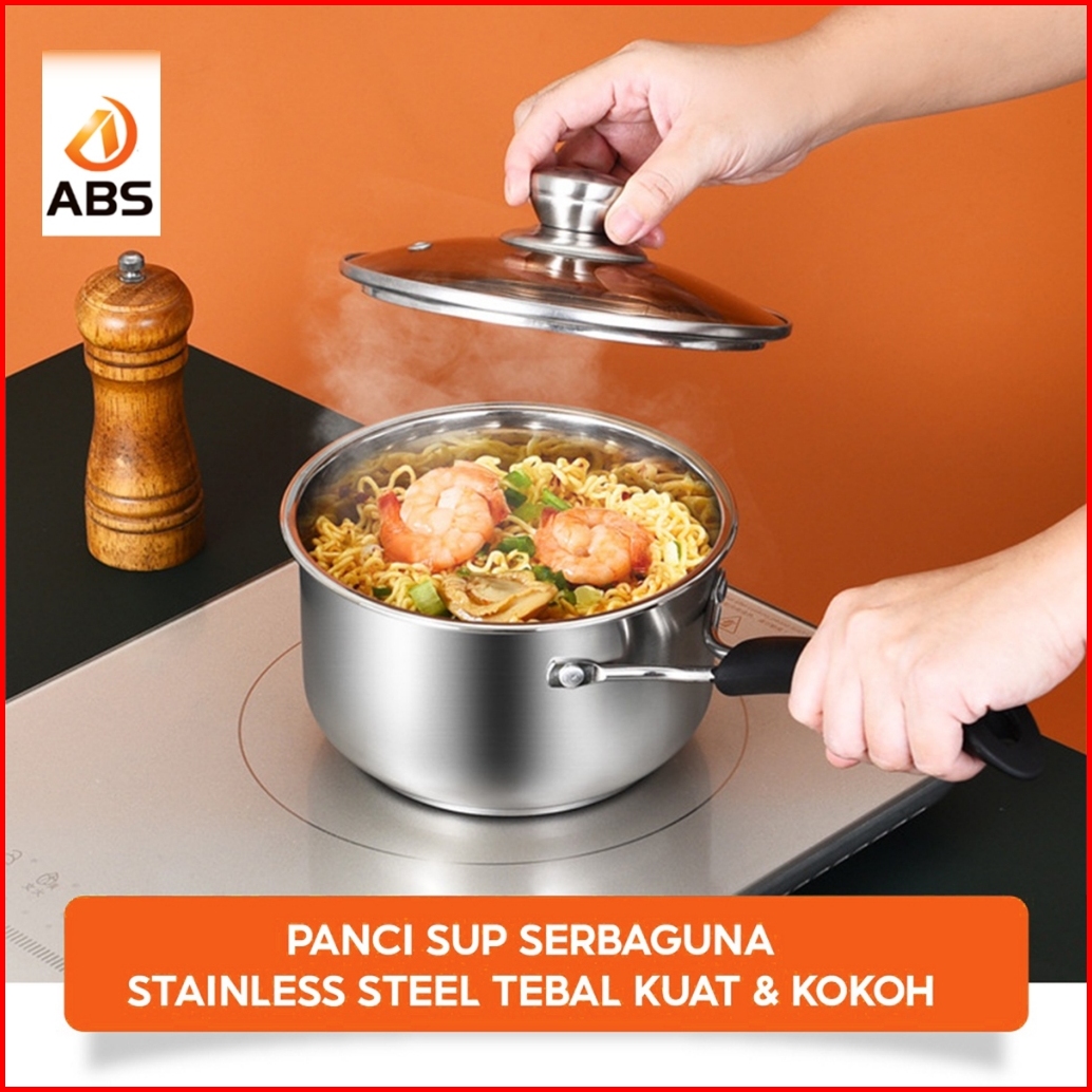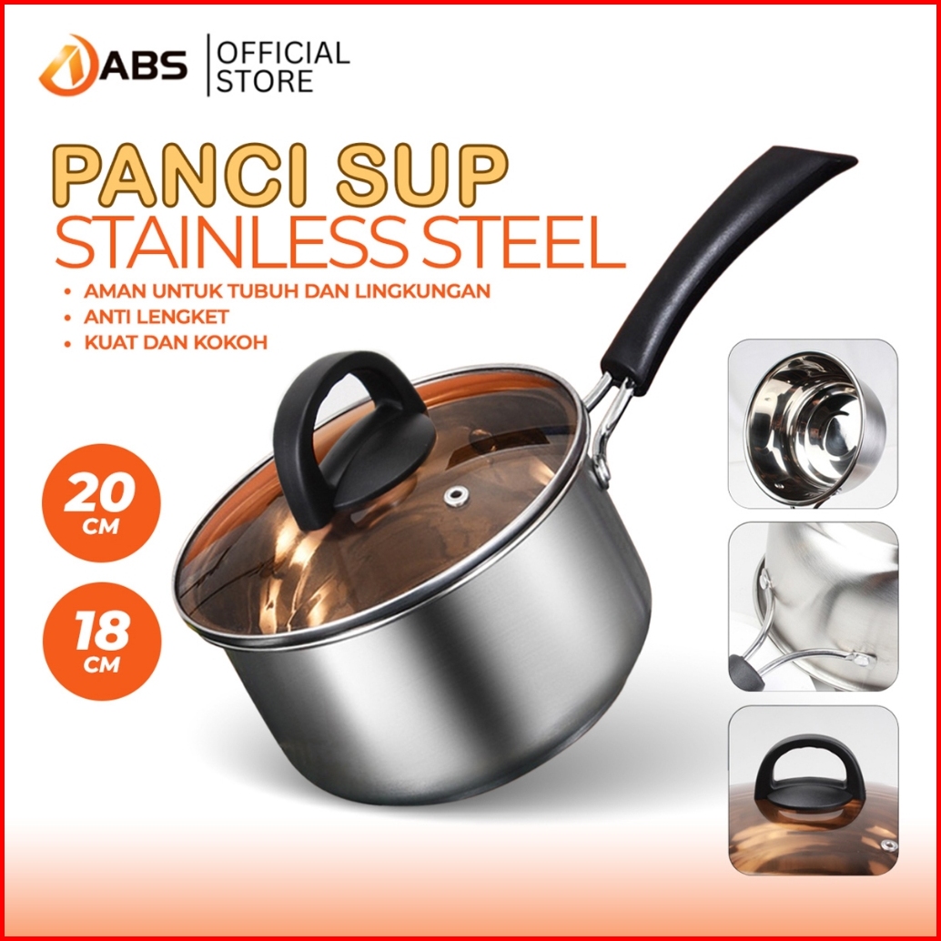 Abs Saucepan Stainless Steel Panci Sup Kuah Anti Lengket Stainless Dengan Gagang 18 Dan 20cm