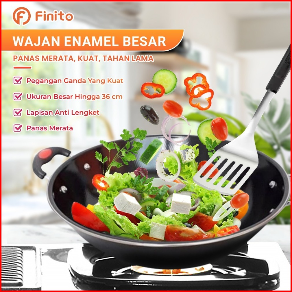 Finito Wajan Enamel Penggorengan Kuali Anti Lengket Panci Wajan Labu Liter