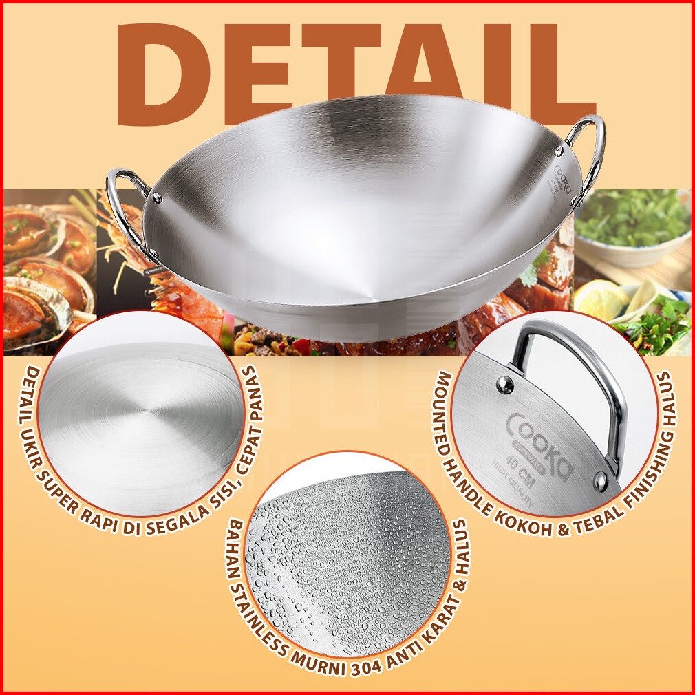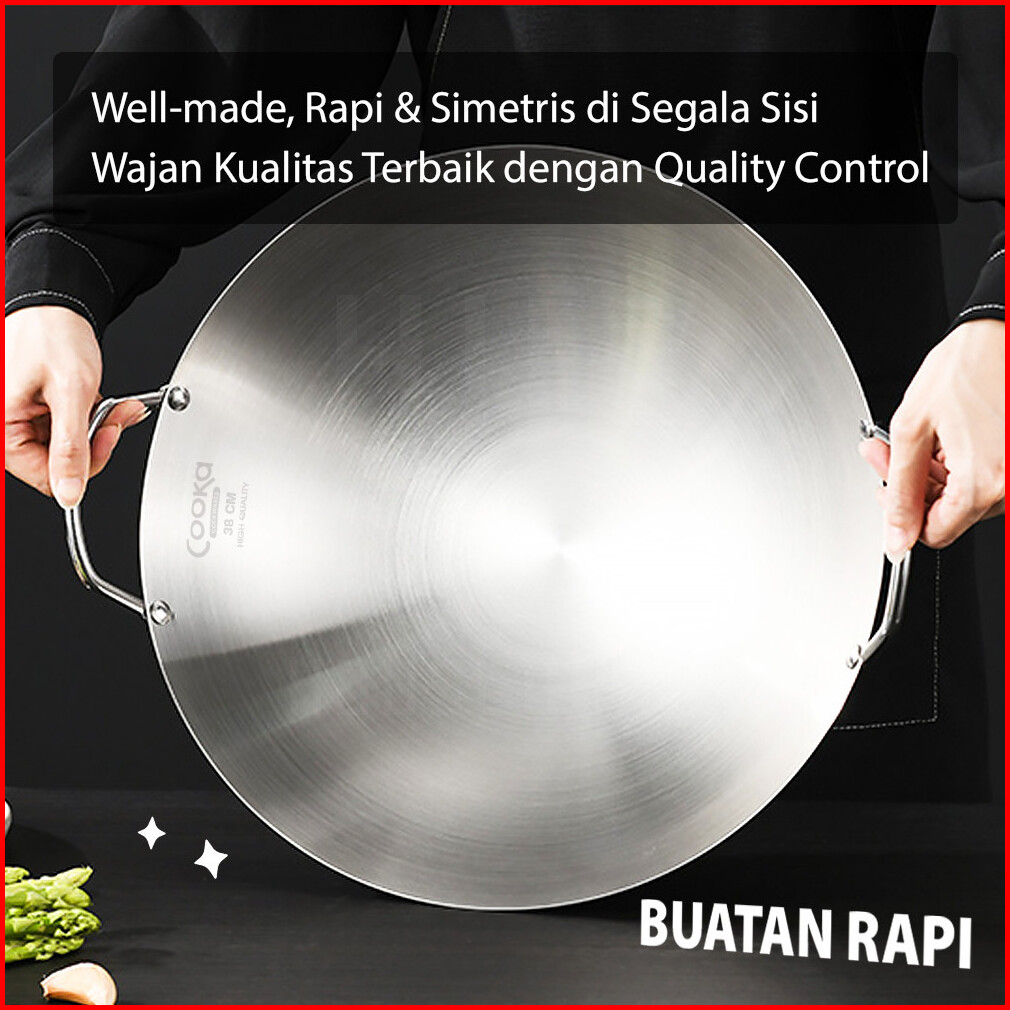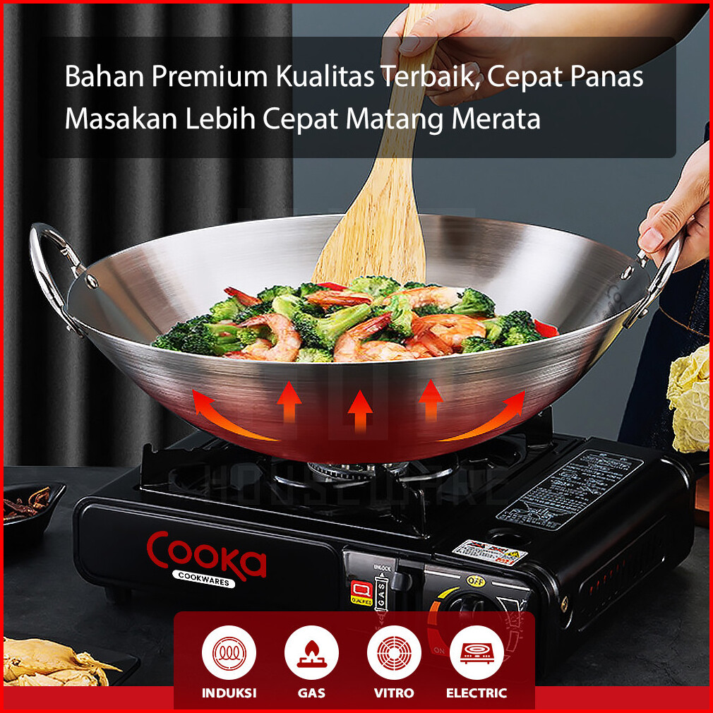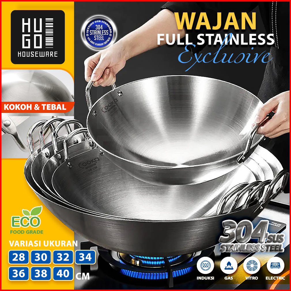 Hugo Wajan Penggorengan Stainless Tebal Anti Lengket Kuali Serbaguna Wokpan Premium Quality