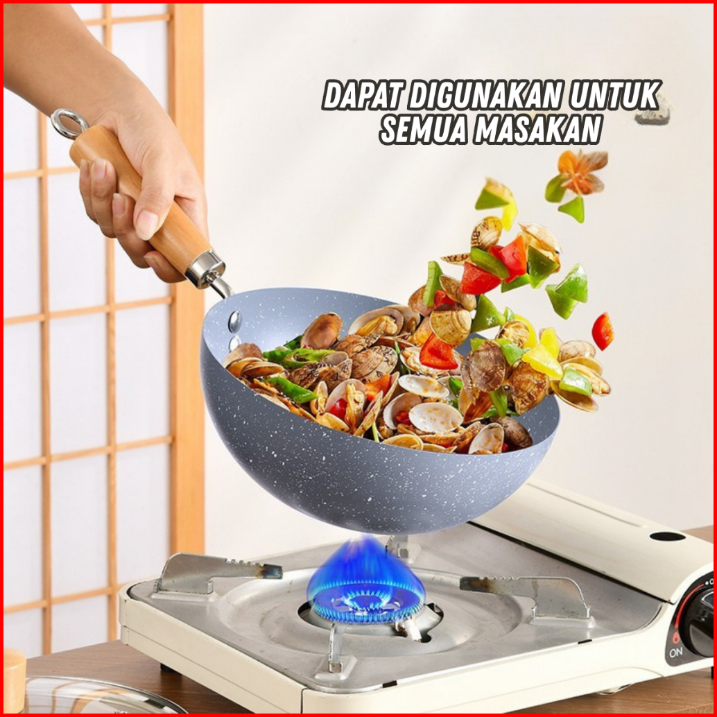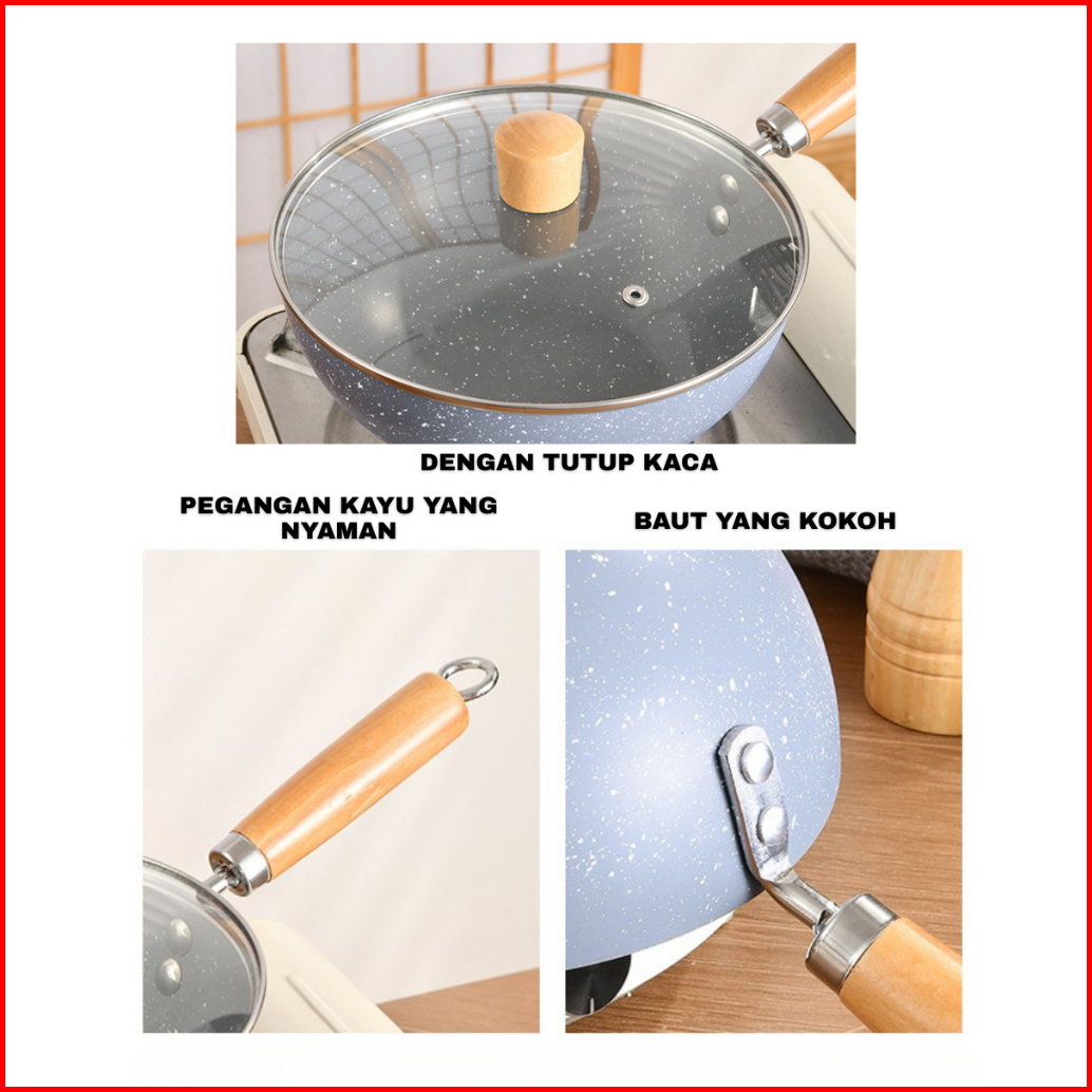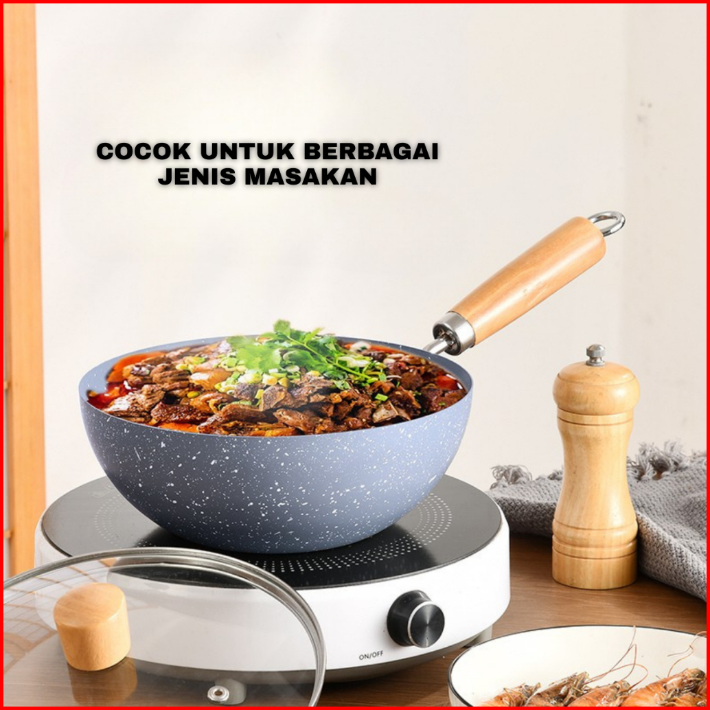 Ceo Panci Wajan Penggorengan Anti Lengket Coated Granite Teflon Frying Pan Alat Masak Gagang Kayu