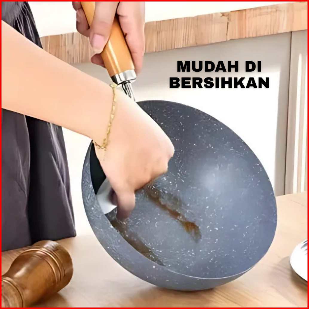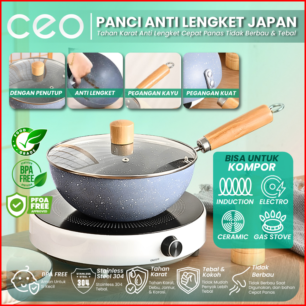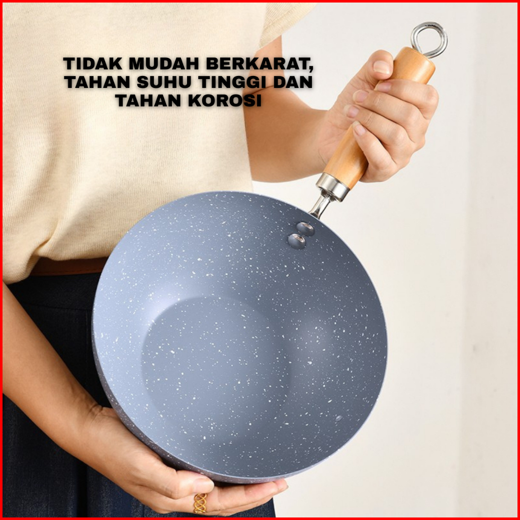 Ceo Panci Wajan Penggorengan Anti Lengket Coated Granite Teflon Frying Pan Alat Masak Gagang Kayu