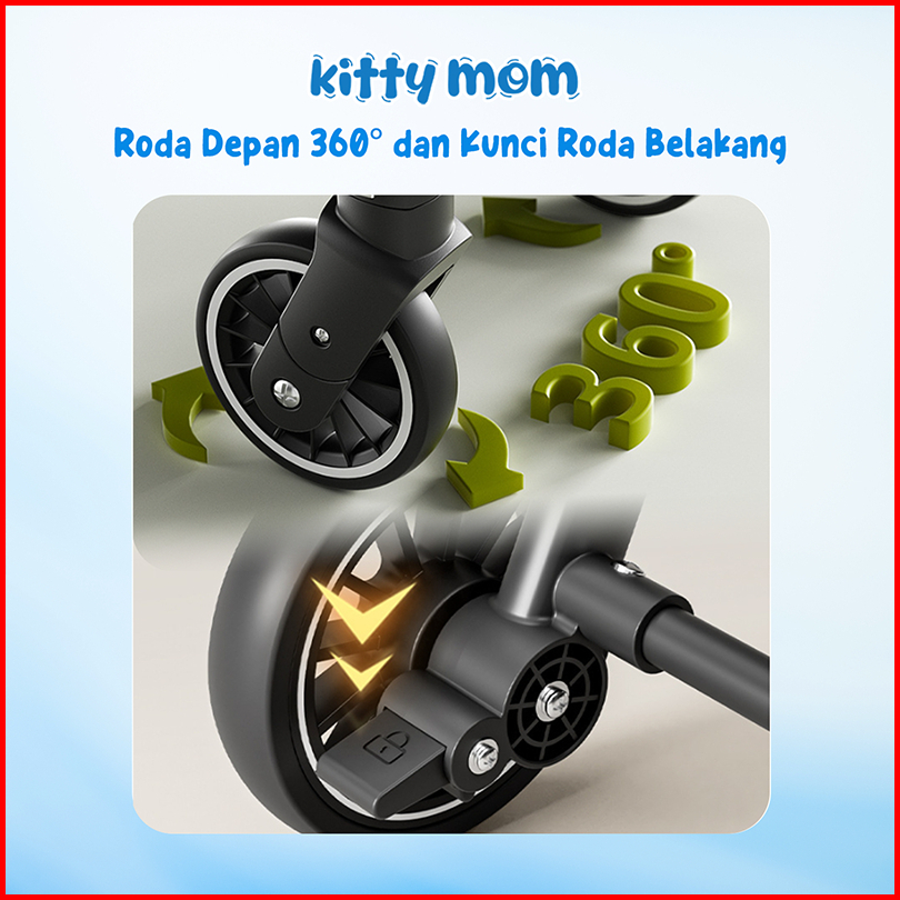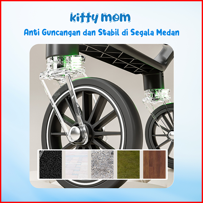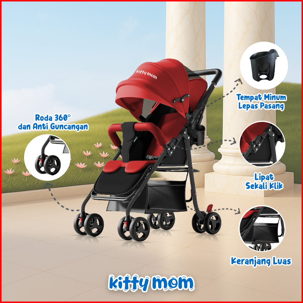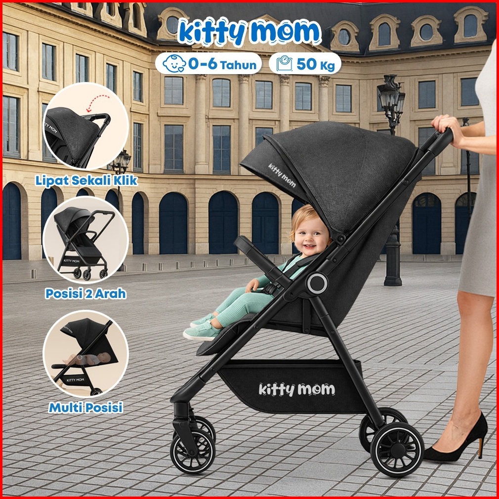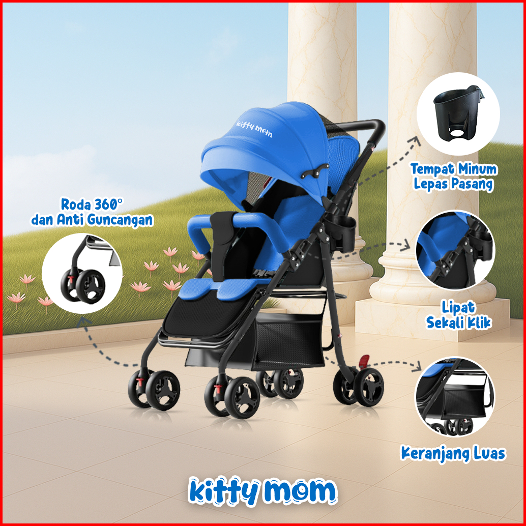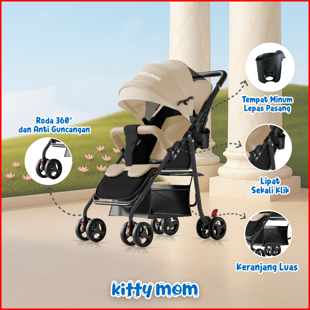 Kitty Mom Stroller Bayi Lipat Travelling Newborn Cabin Size Dorong Travel Friendly Mudah Dilipat Multi Posisi 0-5 Tahun