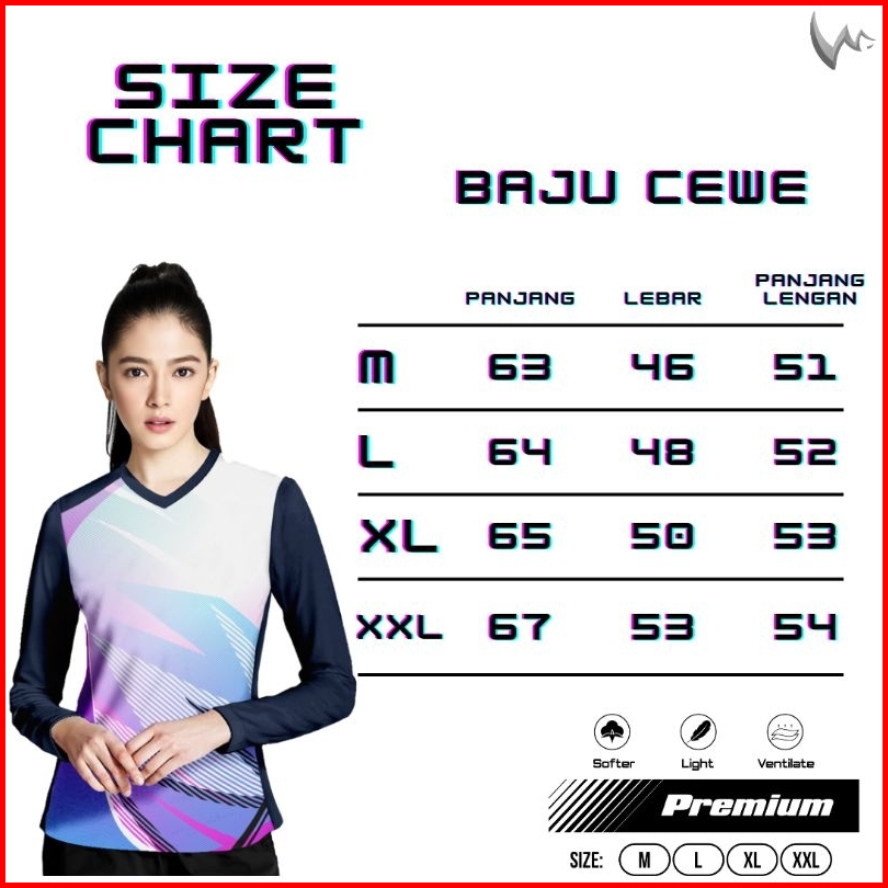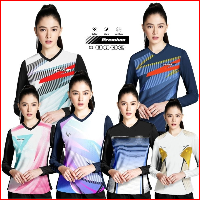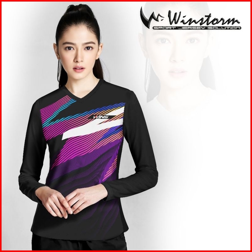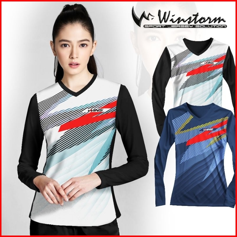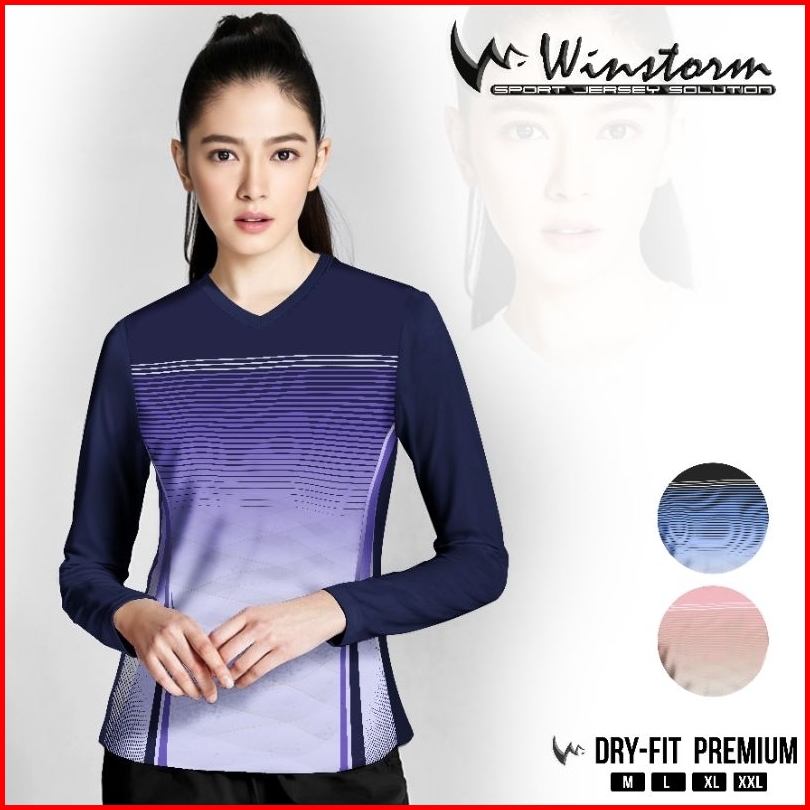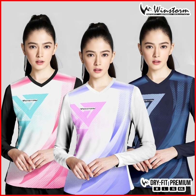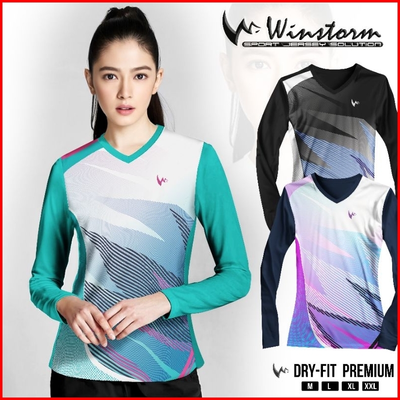 Winstorm Lengan Panjang Baju Olahraga Cewe Premium Dewasa Jersey Badminton Wanita Koas Voli Print