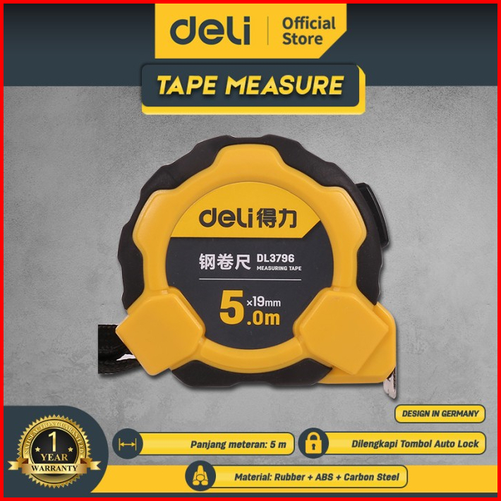 Deli Tape Measure Meteran Bahan Karet Abs Akurat Auto Lock Dl3796
