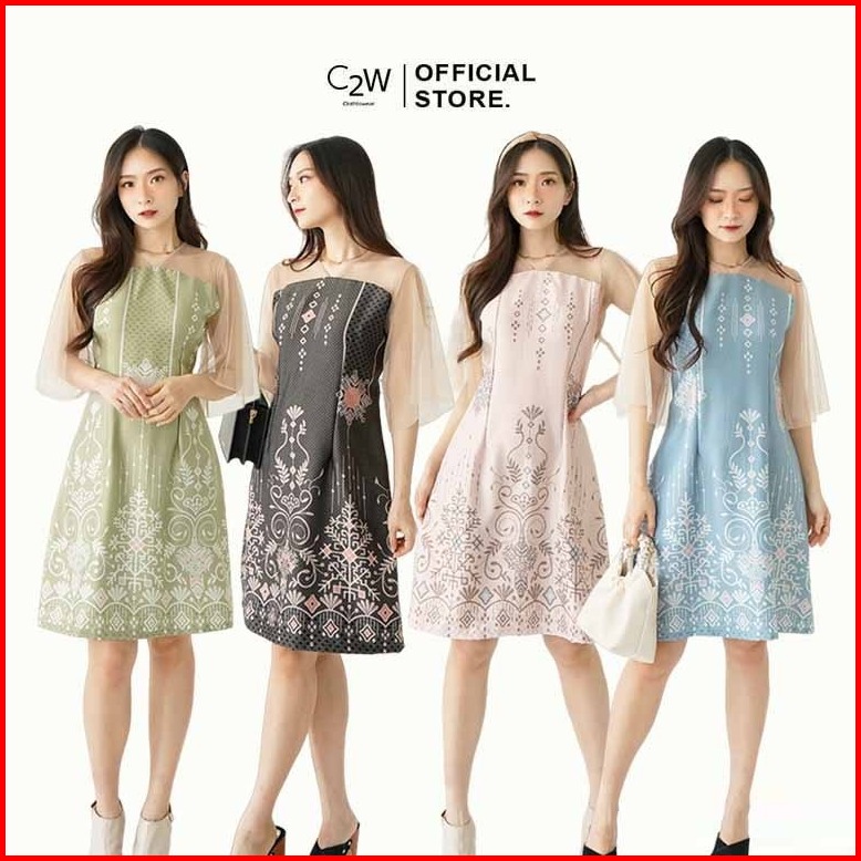 C2w Clothtowear Dress Tile Batik Wanita All Size Satin Women S Clothes 643-cbp