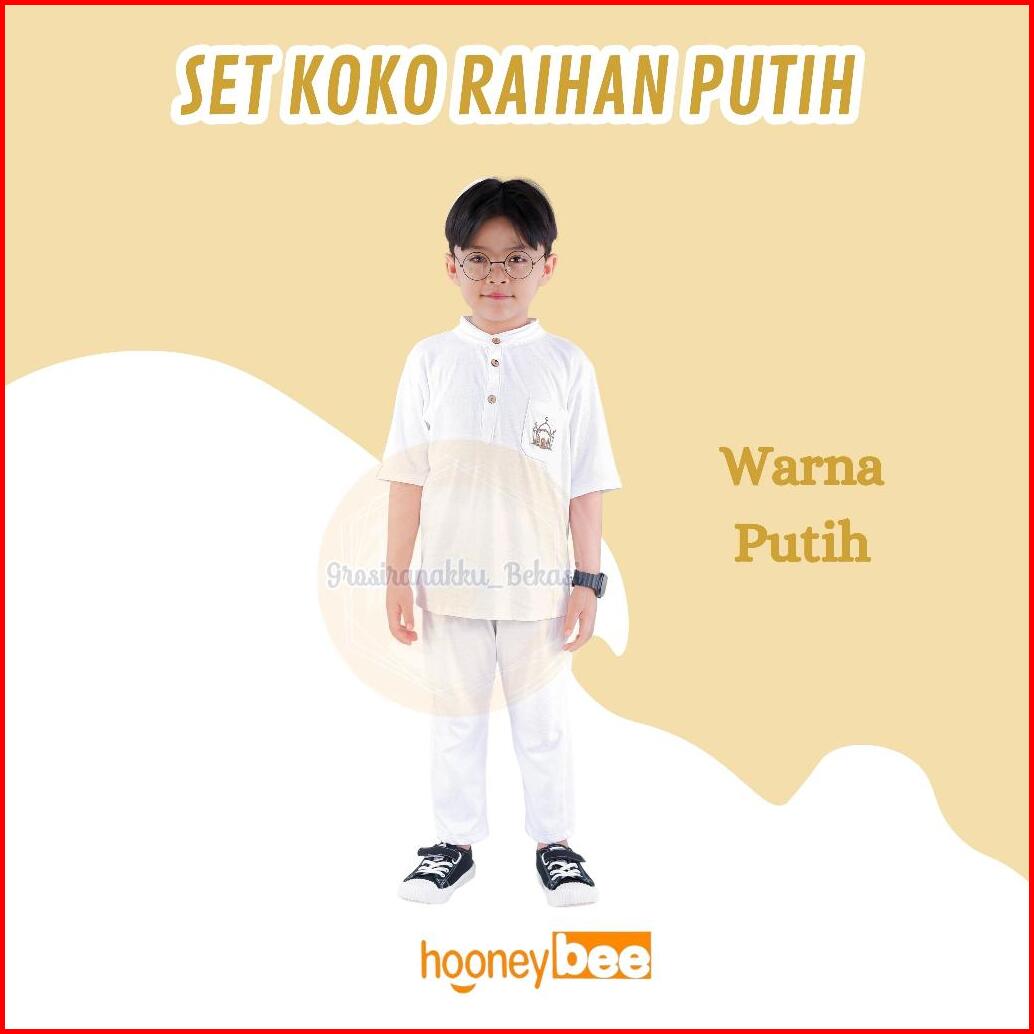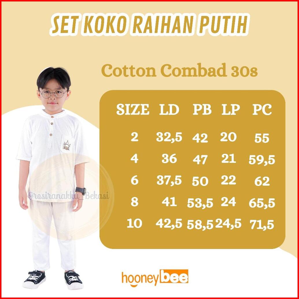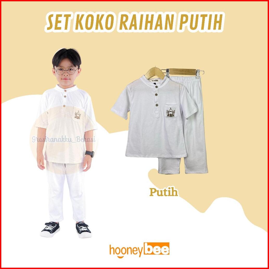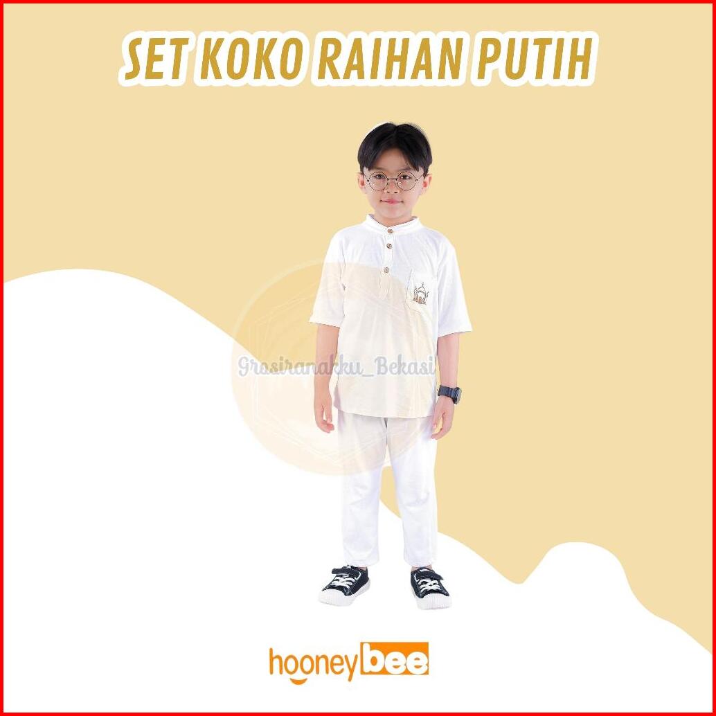 Setelan Koko Anak Raihan Junior Hooneybee Warna Putih Size 2-10 Thn