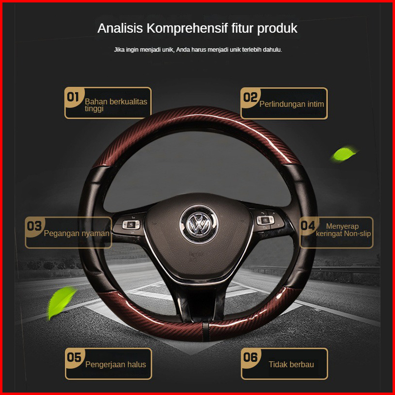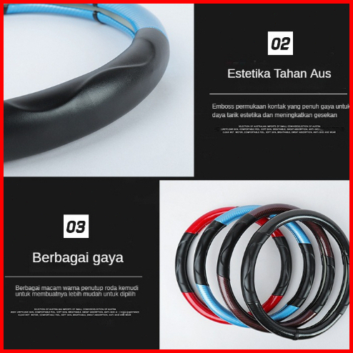Cover Stir Mobil Universal Serat Kulit Elastis Sarung Setir Mobil Racing 37-38cm Avanza
