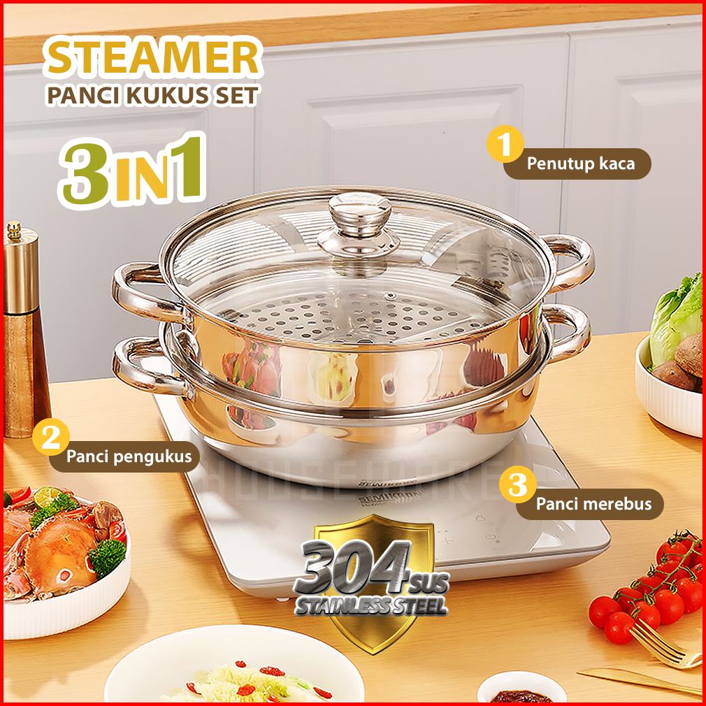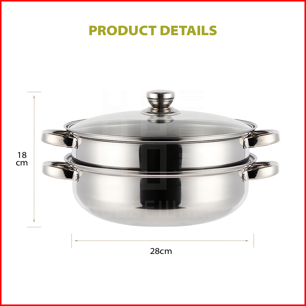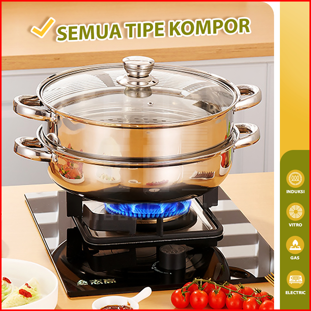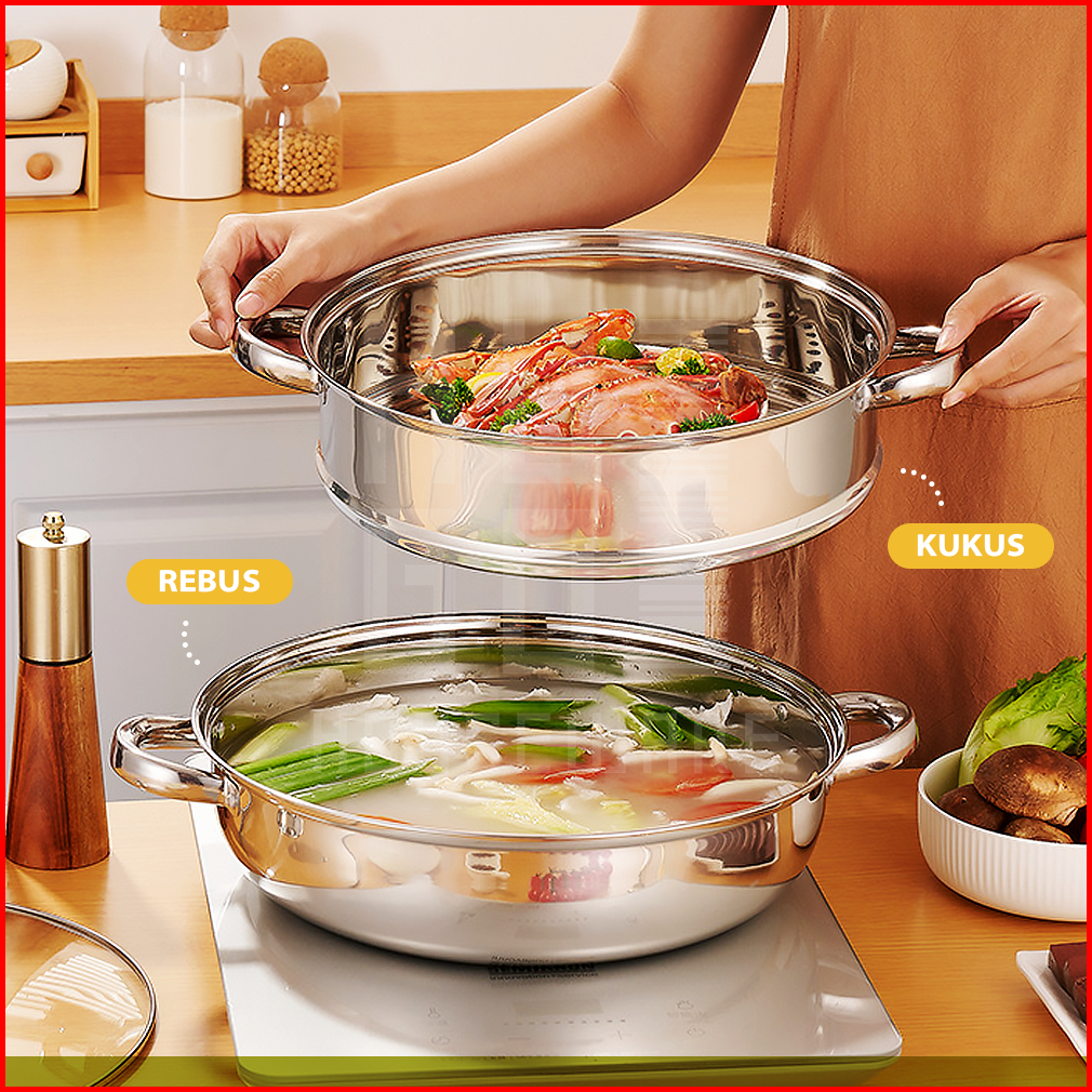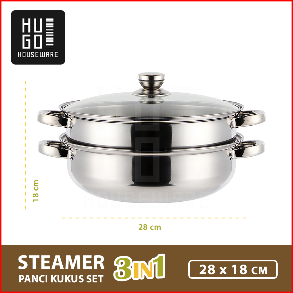 Hugo Panci Steamer Kukusan 2 Susun Stainless Steel Panci Kukus Rebus Serbaguna Dandang Premium Quality