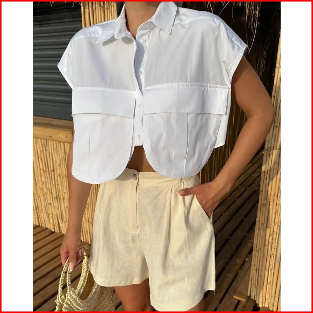 Vallina Outfit - Bolala Crop Top Bloused Korean Atasan Shirt Sleeve Less Remaja Wanita Premium