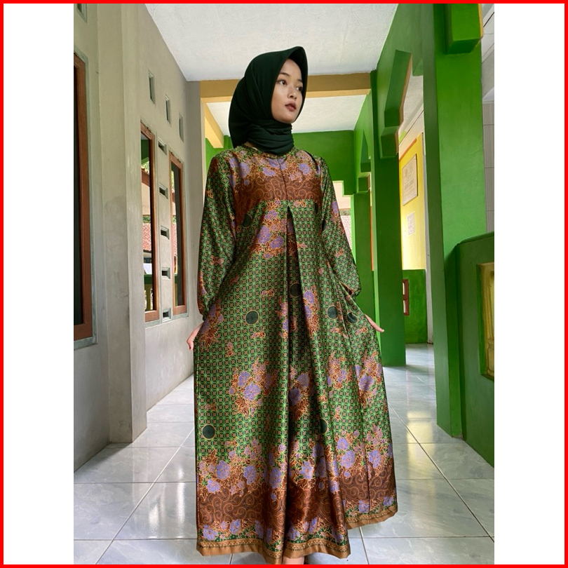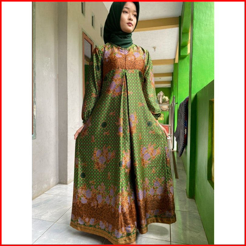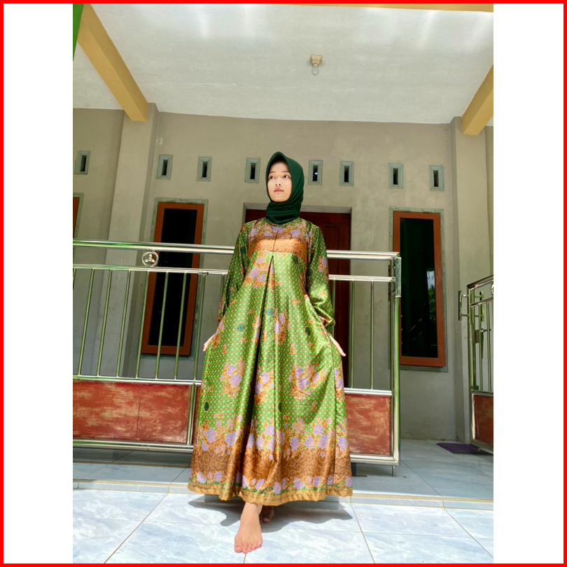 Seragam Muslimat Semi Sutra Hijau Pekat