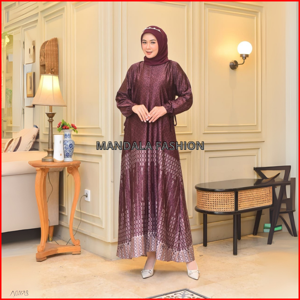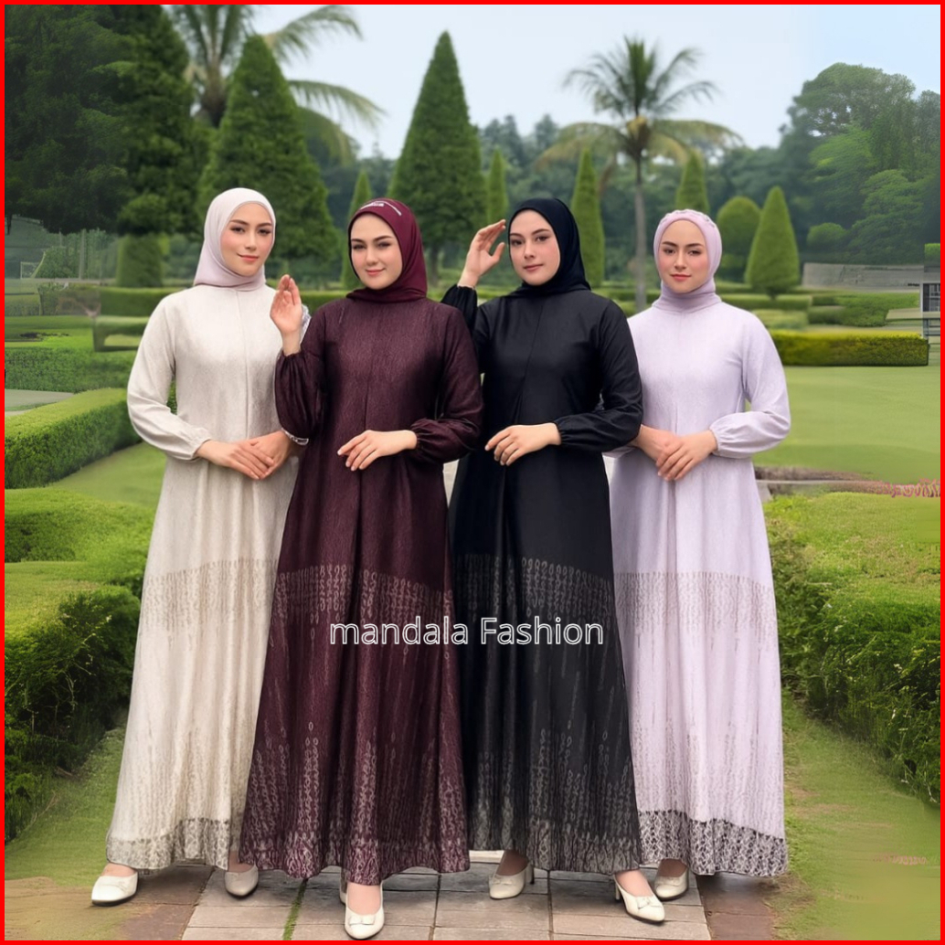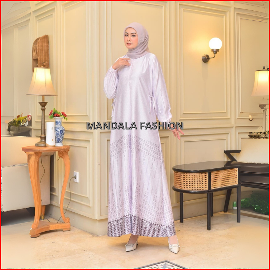 Gamis Pesta Mewah Motif Printing Bunsui Wudhu Freandly Elegant Terbaru Silk Premium Fashion Terlaris