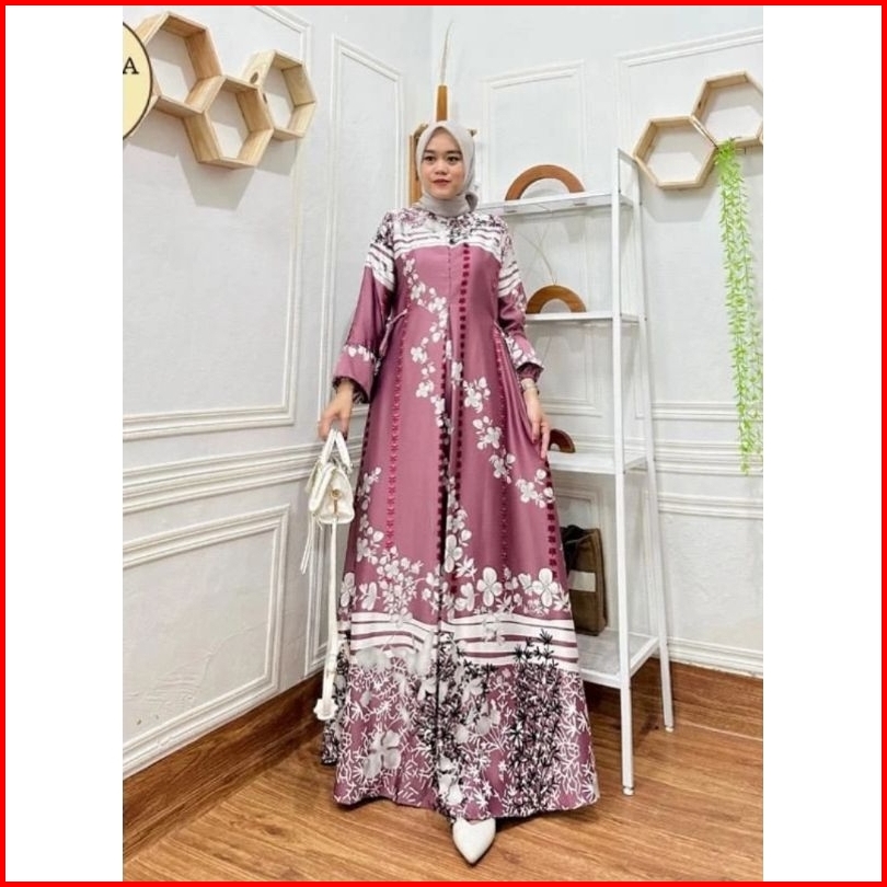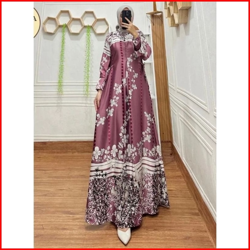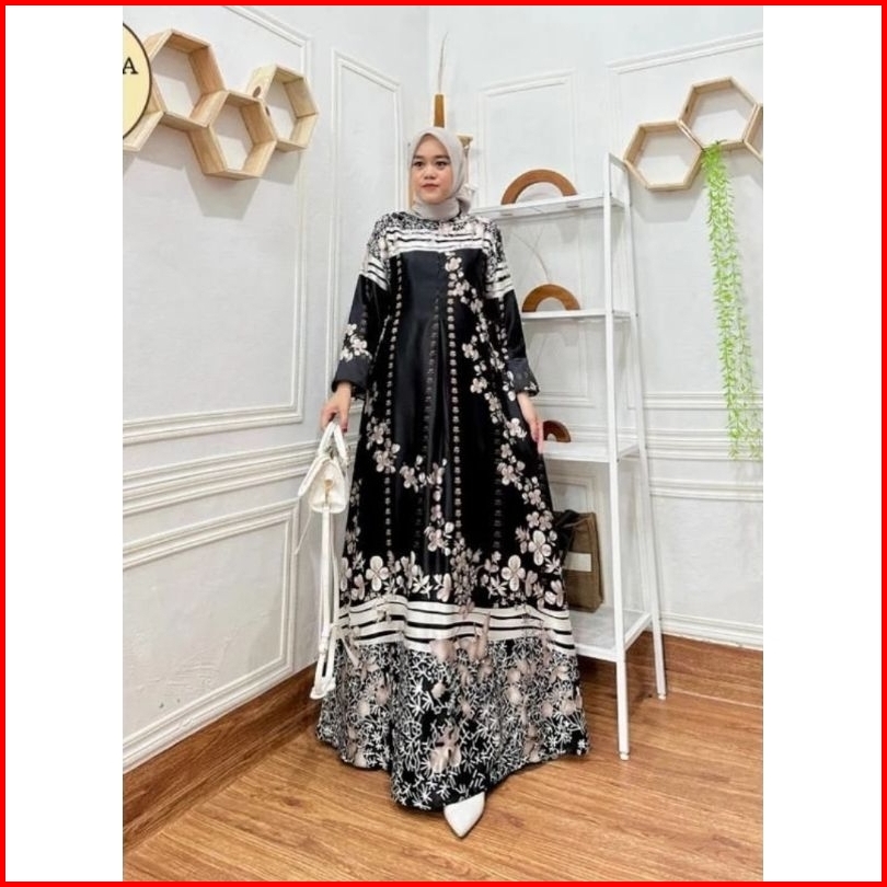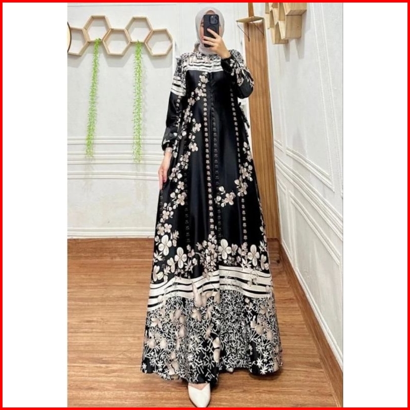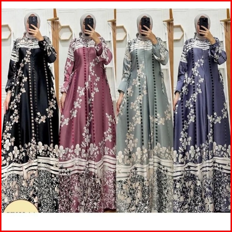 Gamis Silk Premium Motif Kembang Bunga Gamis Silk Premium Dress Gamis Silk Premium Muslim Wanita Gamis Silk Premium Jumb