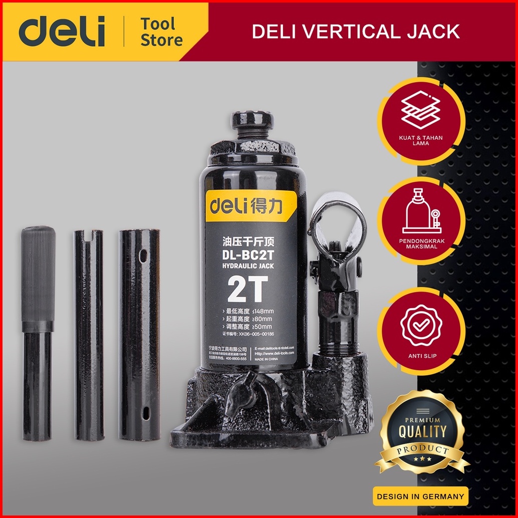 Deli Hydraulic Jack Dongkrak Hidrolik 2t 45 Steel Dl-bc2t Alat Perkakas