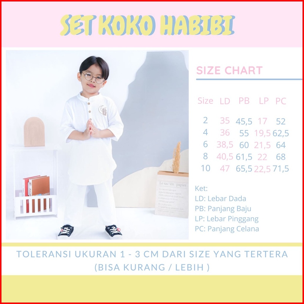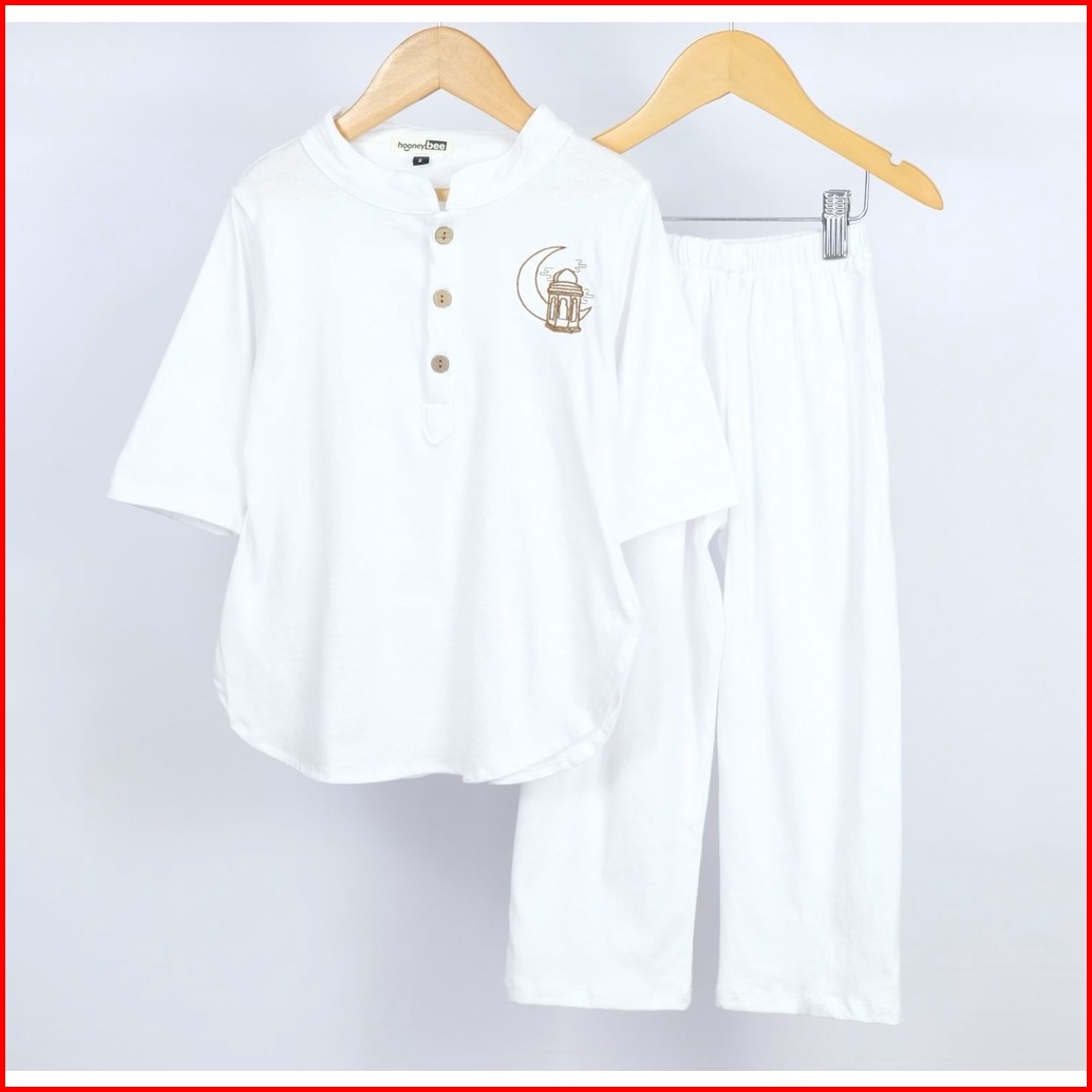 Setelan Koko Anak Habibi Junior Hooneybee Warna Putih Size 2-10 Thn
