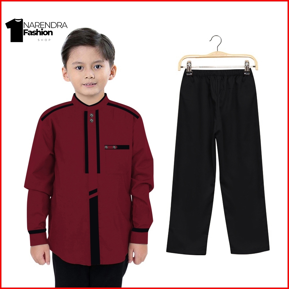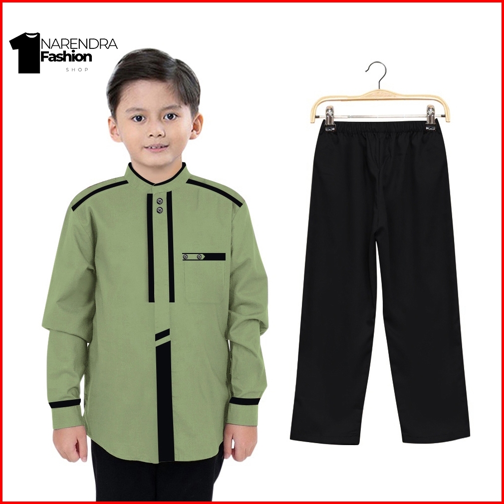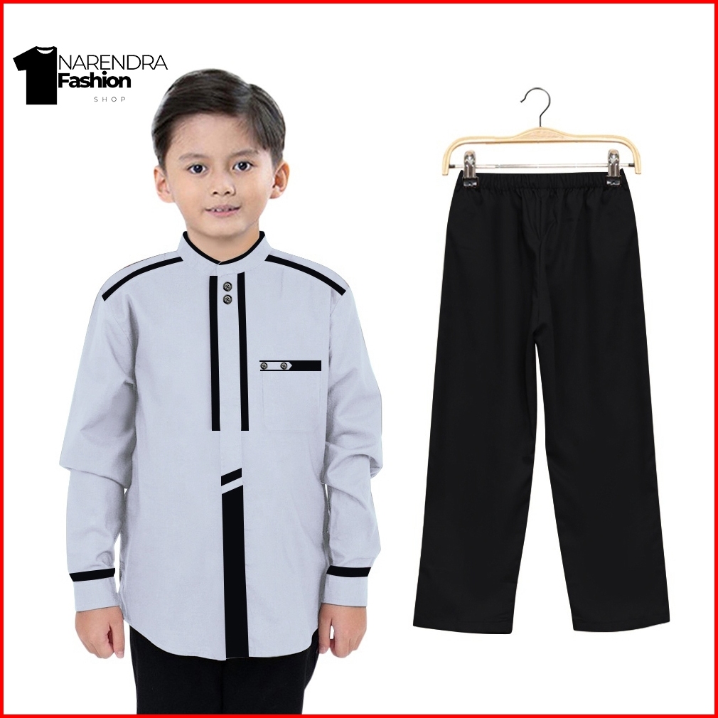 Narendra Fashion Setelan Koko Muslim Anak Laki-laki Putih Polos Lengan Panjang One Set Usia 2-12 Tahun Terlaris Termurah