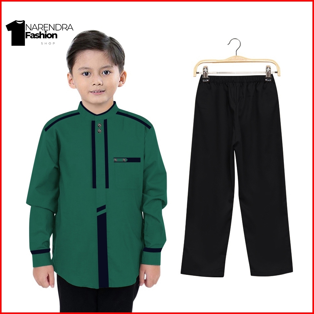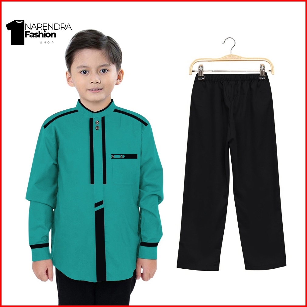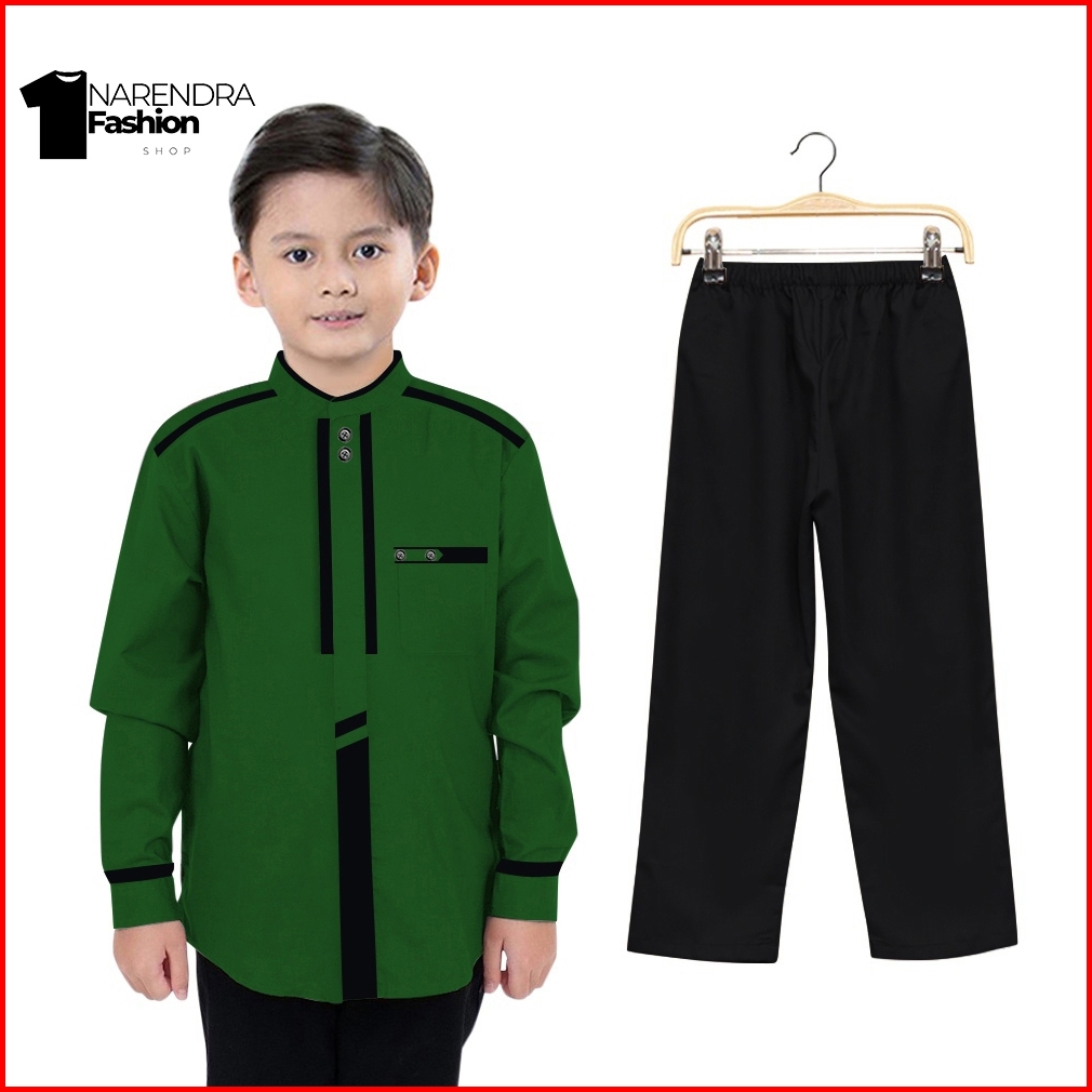 Narendra Fashion Setelan Koko Muslim Anak Laki-laki Putih Polos Lengan Panjang One Set Usia 2-12 Tahun Terlaris Termurah