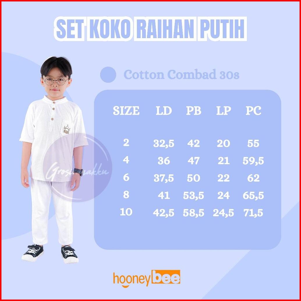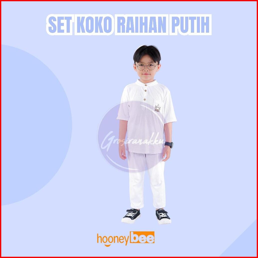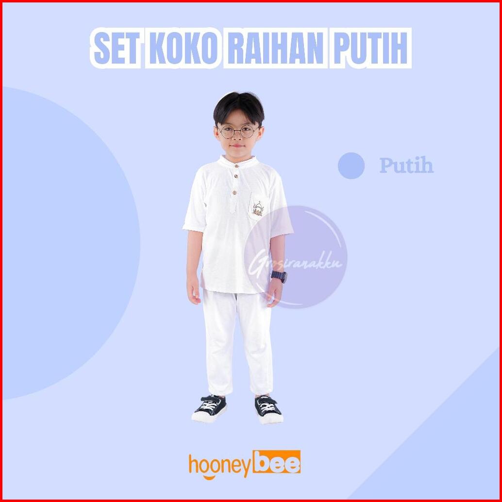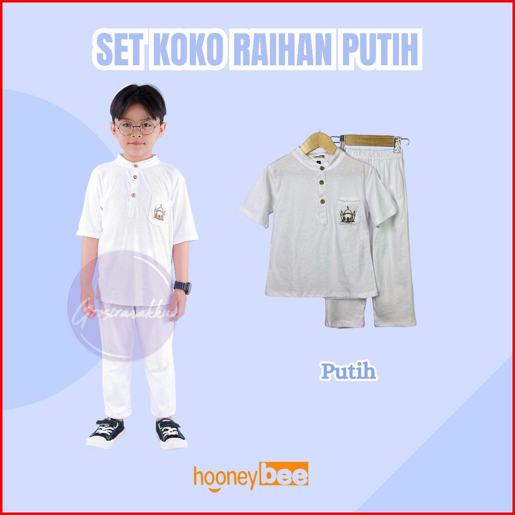 Setelan Koko Anak Raihan Junior Hooneybee Warna Putih Size 2-10 Thn