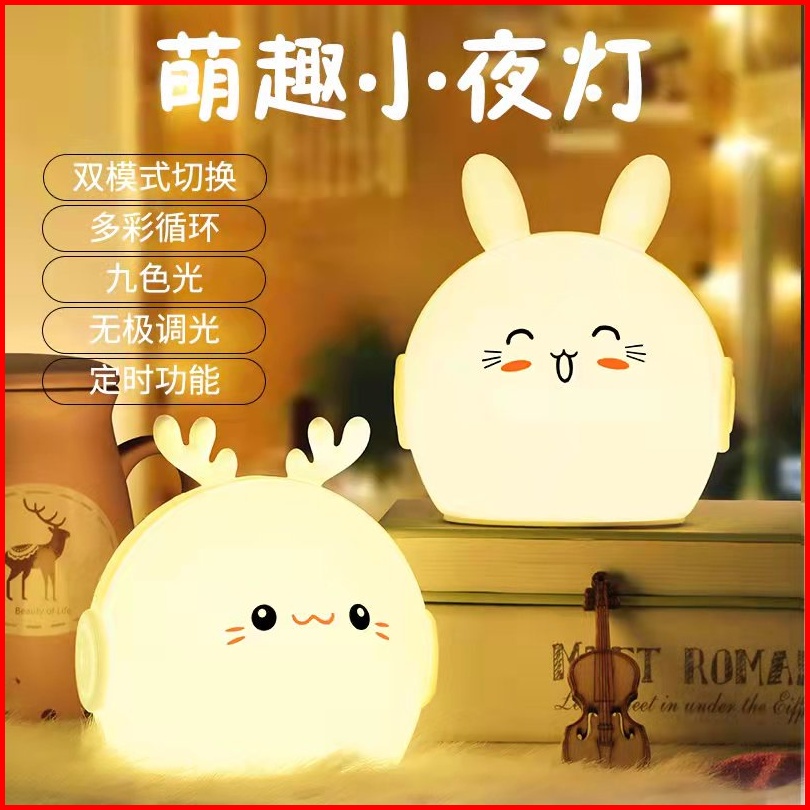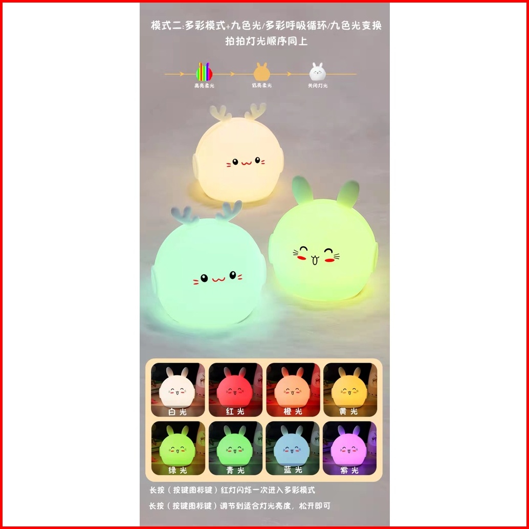 Lampu Tidur Silicon F10 Rusa Kelinci Led With 9 Light - Lampu Tidur 1 Warna - Import High Quality