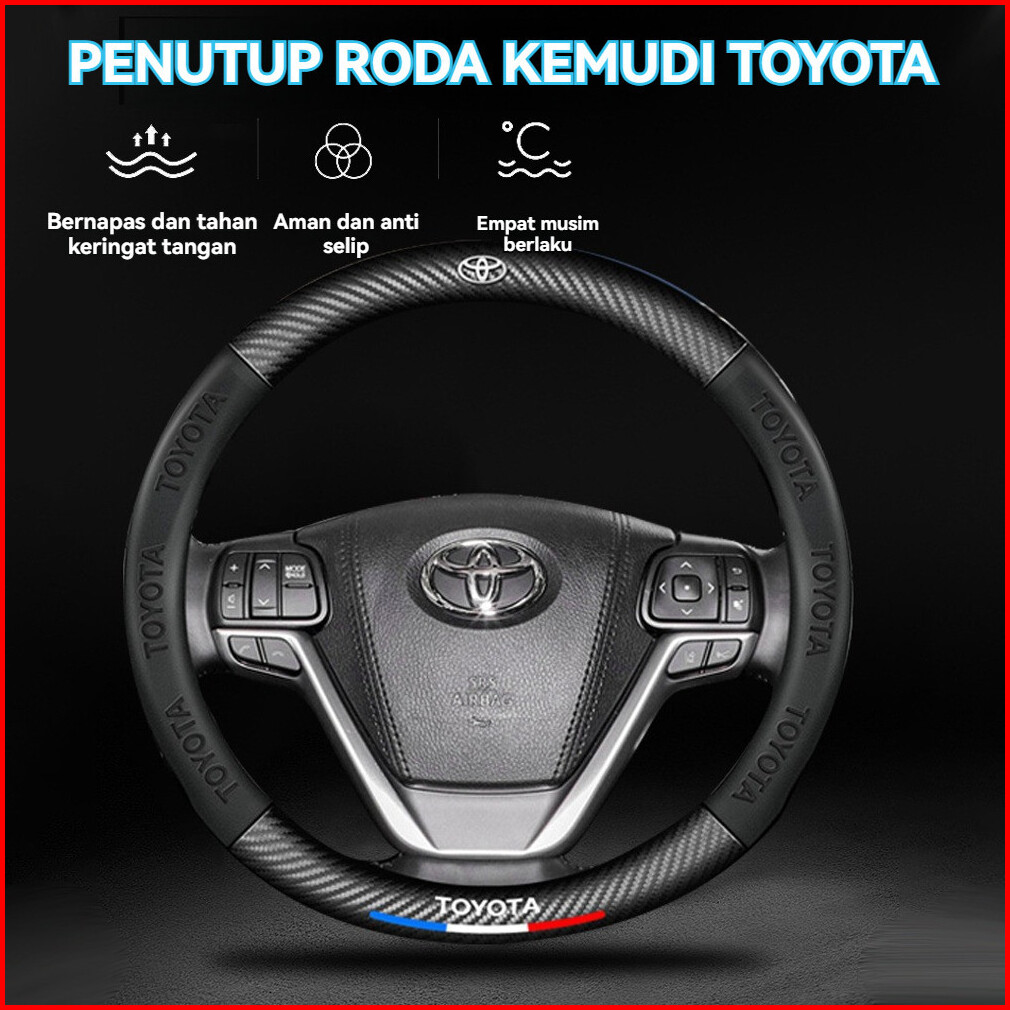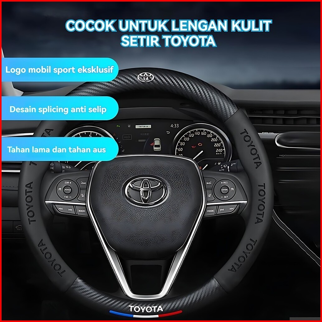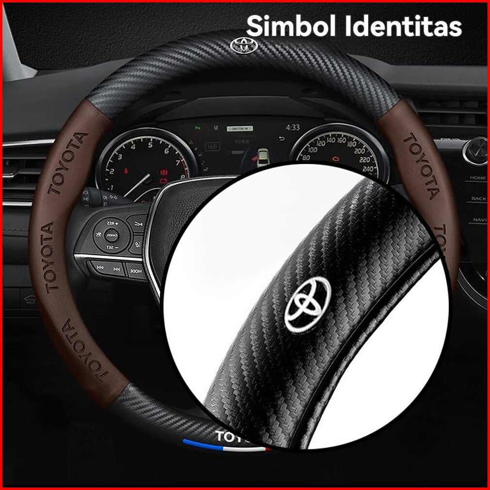 Sarung Stir Mobil Logo Brand Cover Steer Carbon Karbon Sport Kulit Domba Asli Original Toyota Premium Quality Emblem Aks