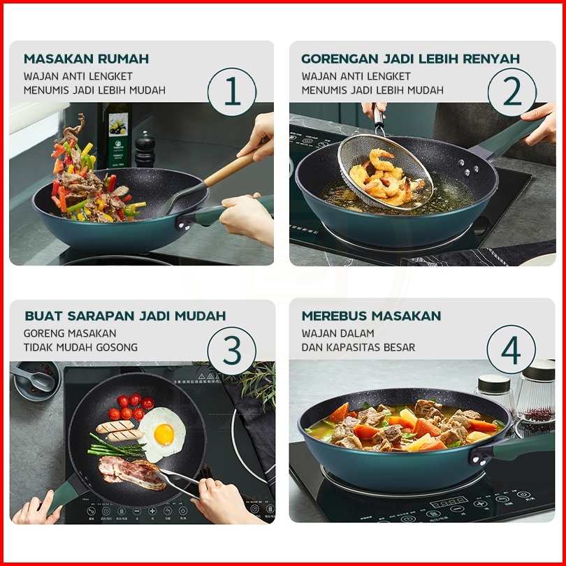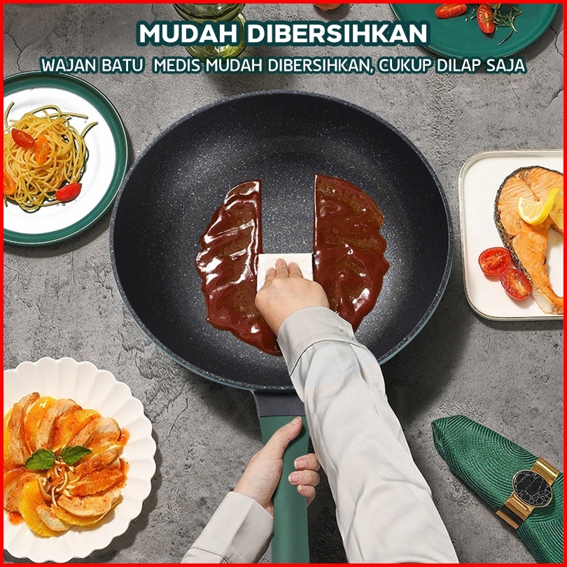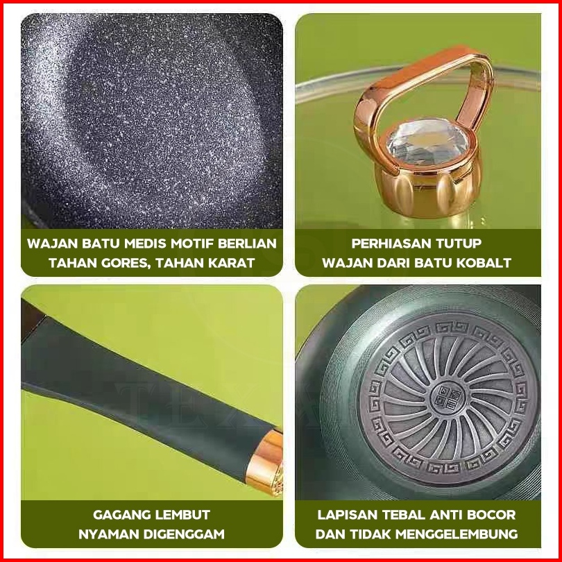 Free Gift24 Jam Dikirim Texania 3in1 Emerald Green Wajan Batu Medis Dengan Steamer 30 Cm Anti Lengket Hijau Premium Panc