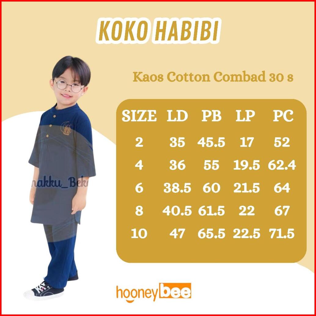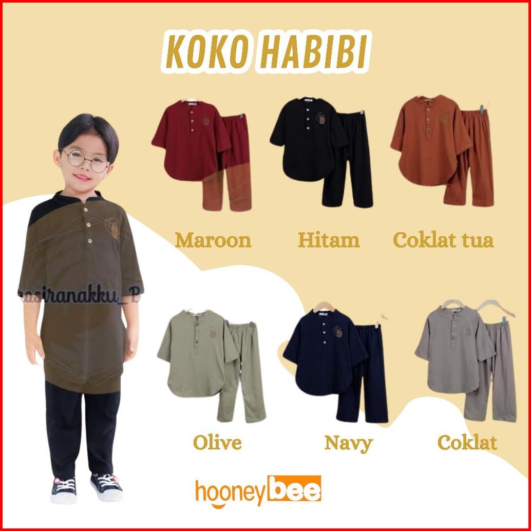 Setelan Koko Anak Habibi Junior Hooneybee Mix Warna Size 2-10 Tahun